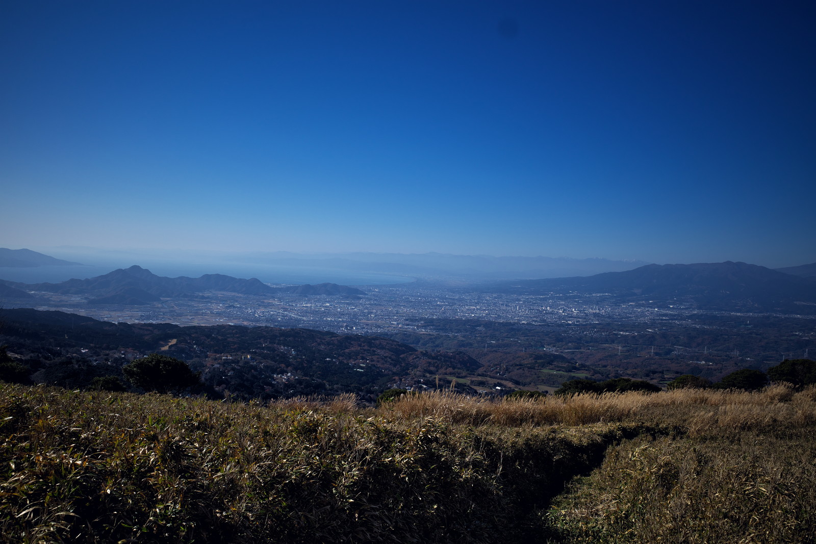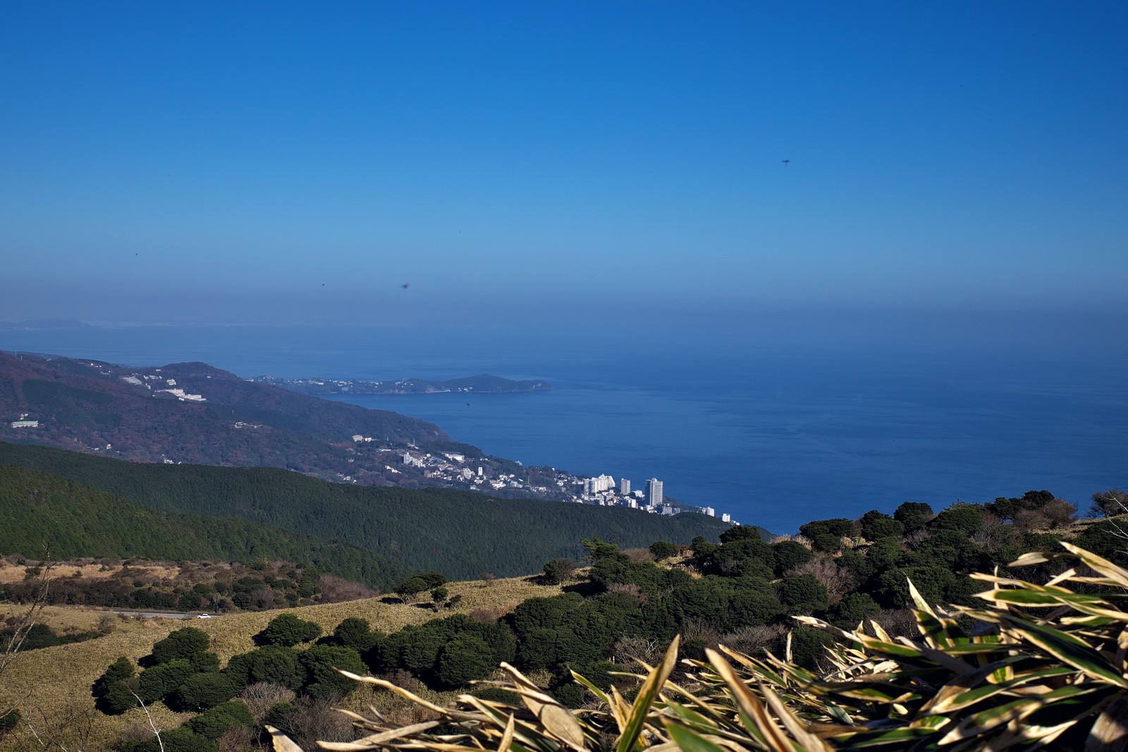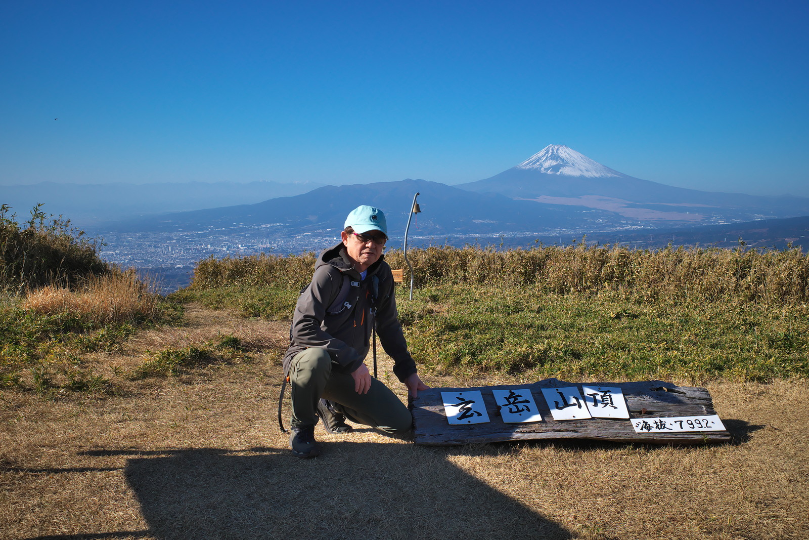 ここの魅力は山頂からの360度の眺望。富士山はもとより、熱海の町並みや相模湾、駿河湾、南アルプスも見通せる。なんて言っても、熊出没注意の看板がない。これ安心登山には必須。