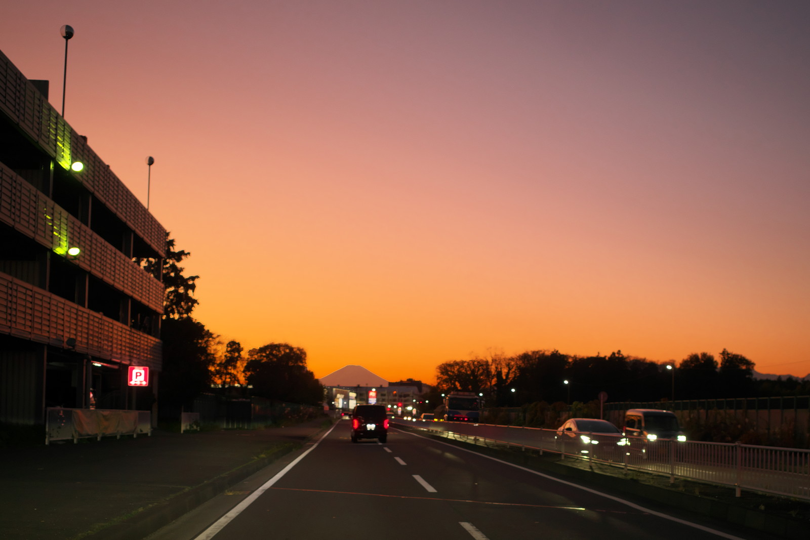画は、藤沢市下土棚近辺で夕焼けに染まる富士山が見えたので車を路肩に止めてパチリしてみた。