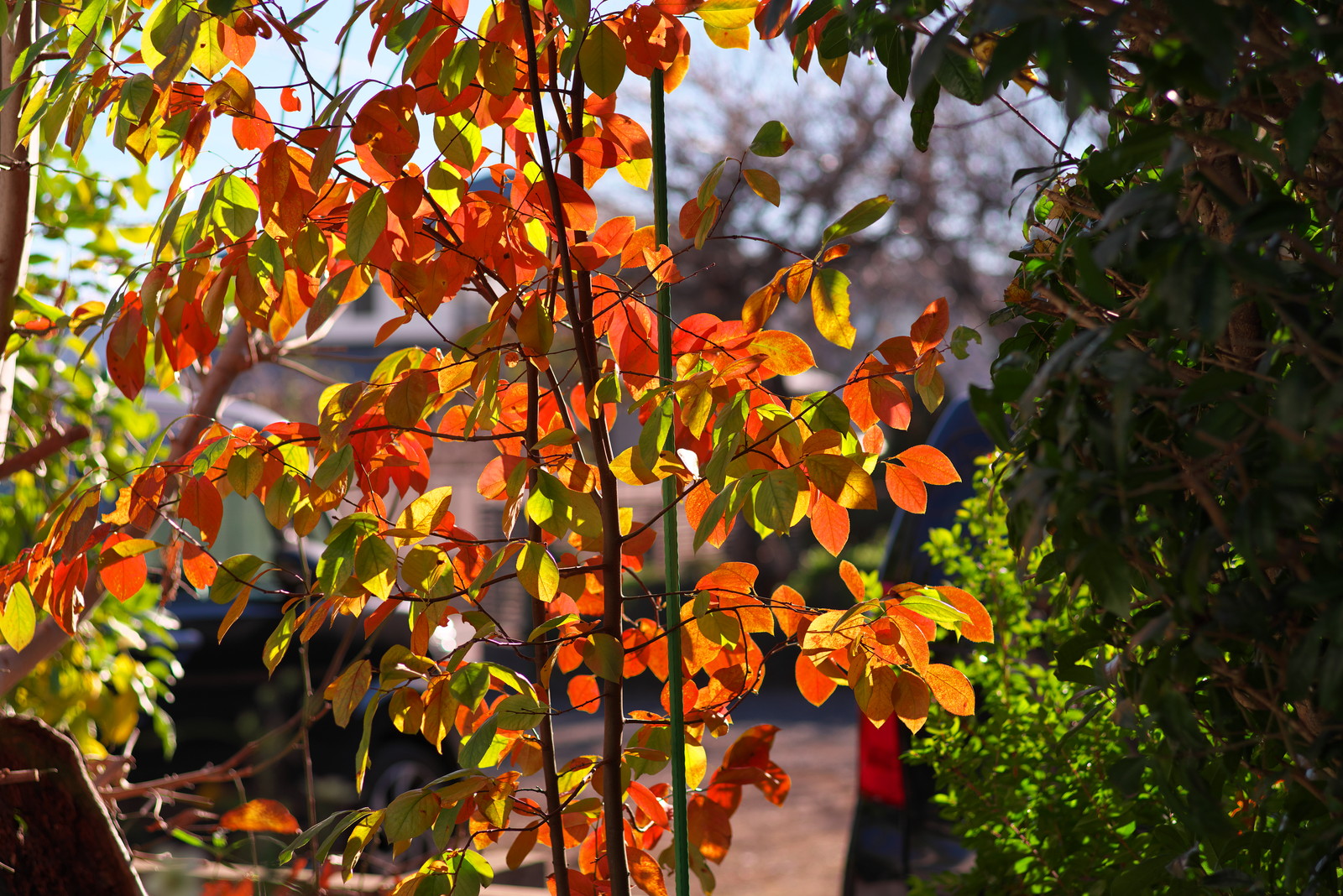 さて、今朝、カリンの木の紅葉した葉が朝日の光で透けて見え、なんともいえない光景だったことから思わずパチリした。ただ、この瞬間はやはりそれなりのレンズでないと表現できないと考え、神レンズのFA 77mm F1.8 Limitedをフルサイズカメラに装着して撮影してみた。
