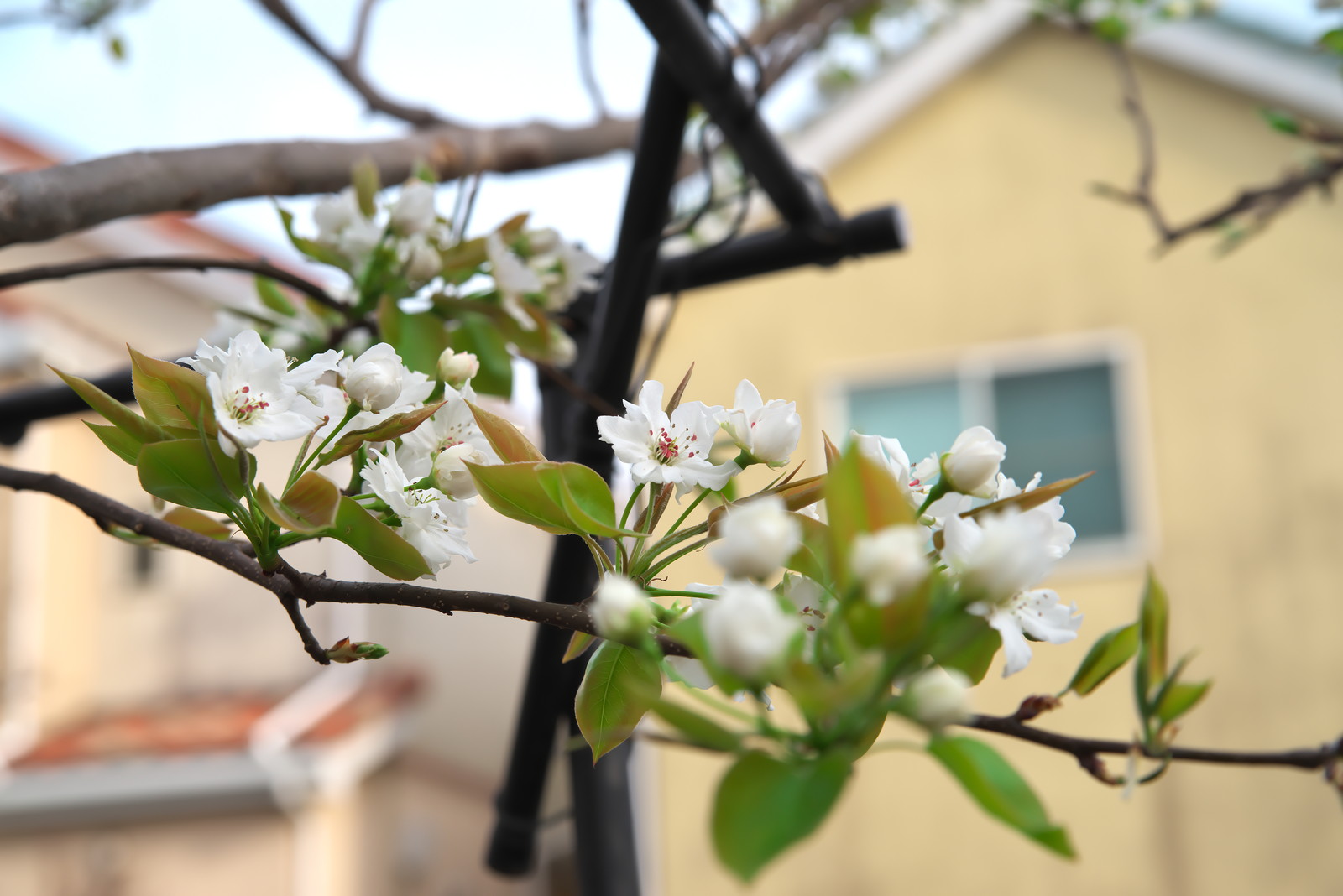 帰宅後は、ナシの花が咲いてきたので早速受粉作業。