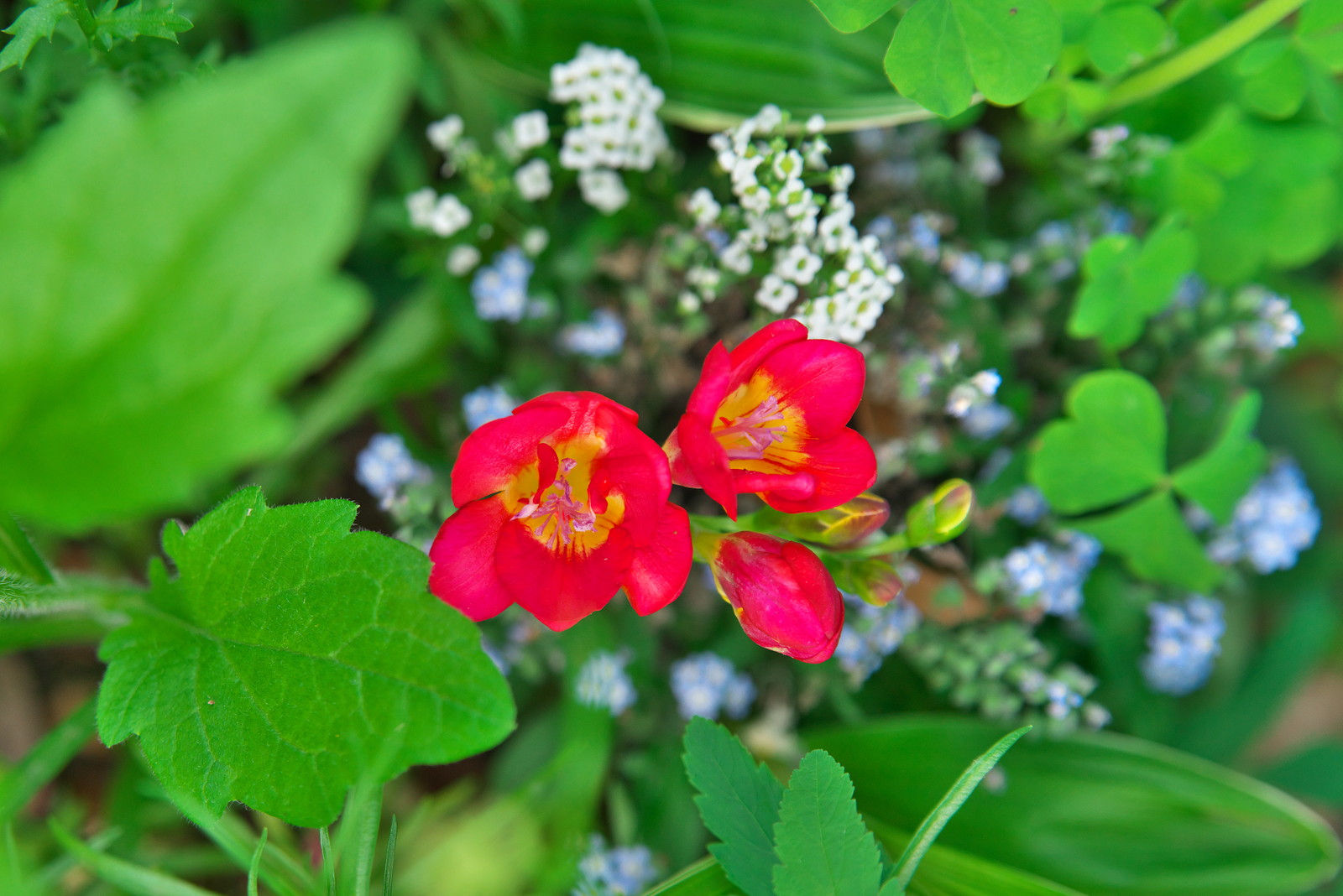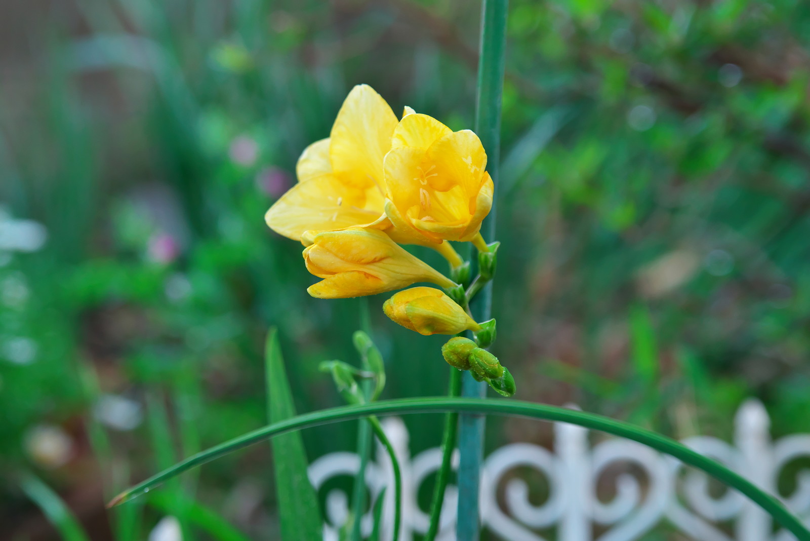 そして、庭にはフリージアが咲いていた。思わずパチリ。夕方なので、ISOも少し上がり気味。