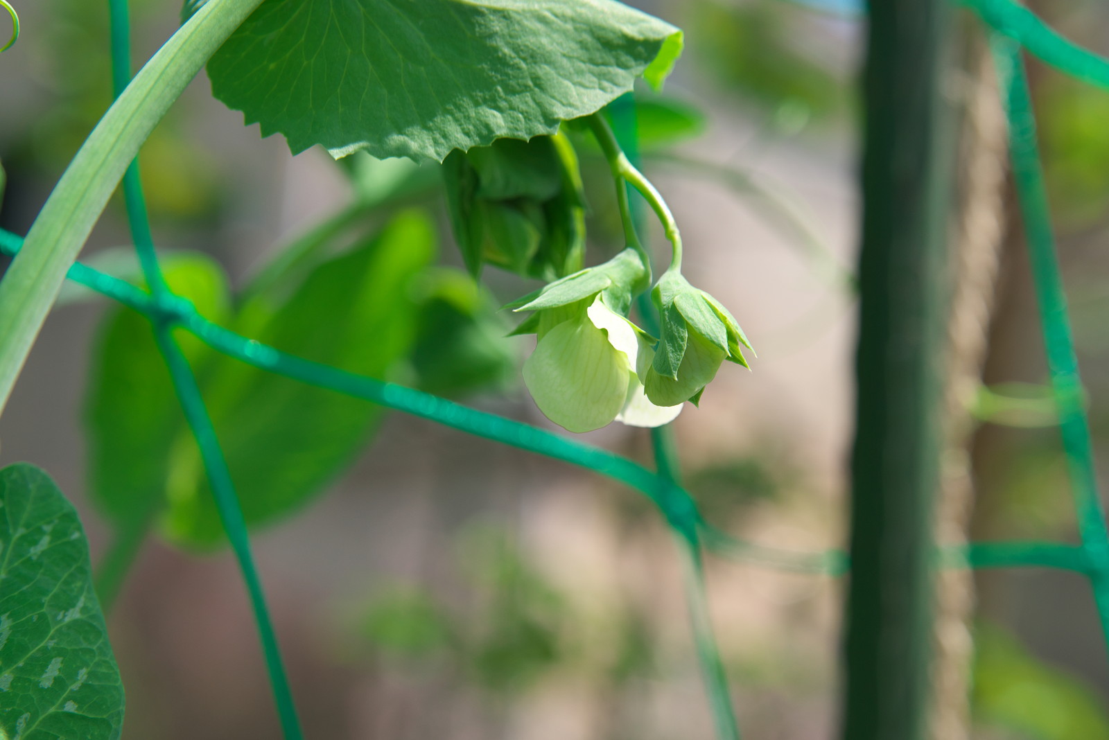 サヤエンドウに一番花、収穫が近づいてきた。