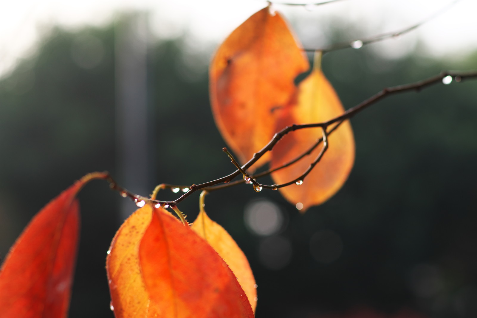 昨夜降っていた雨が上がり、薄日が差して植物について雨粒が綺麗だったのでパチリしてみた。