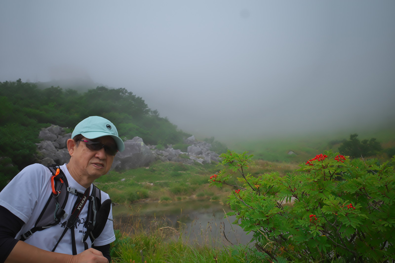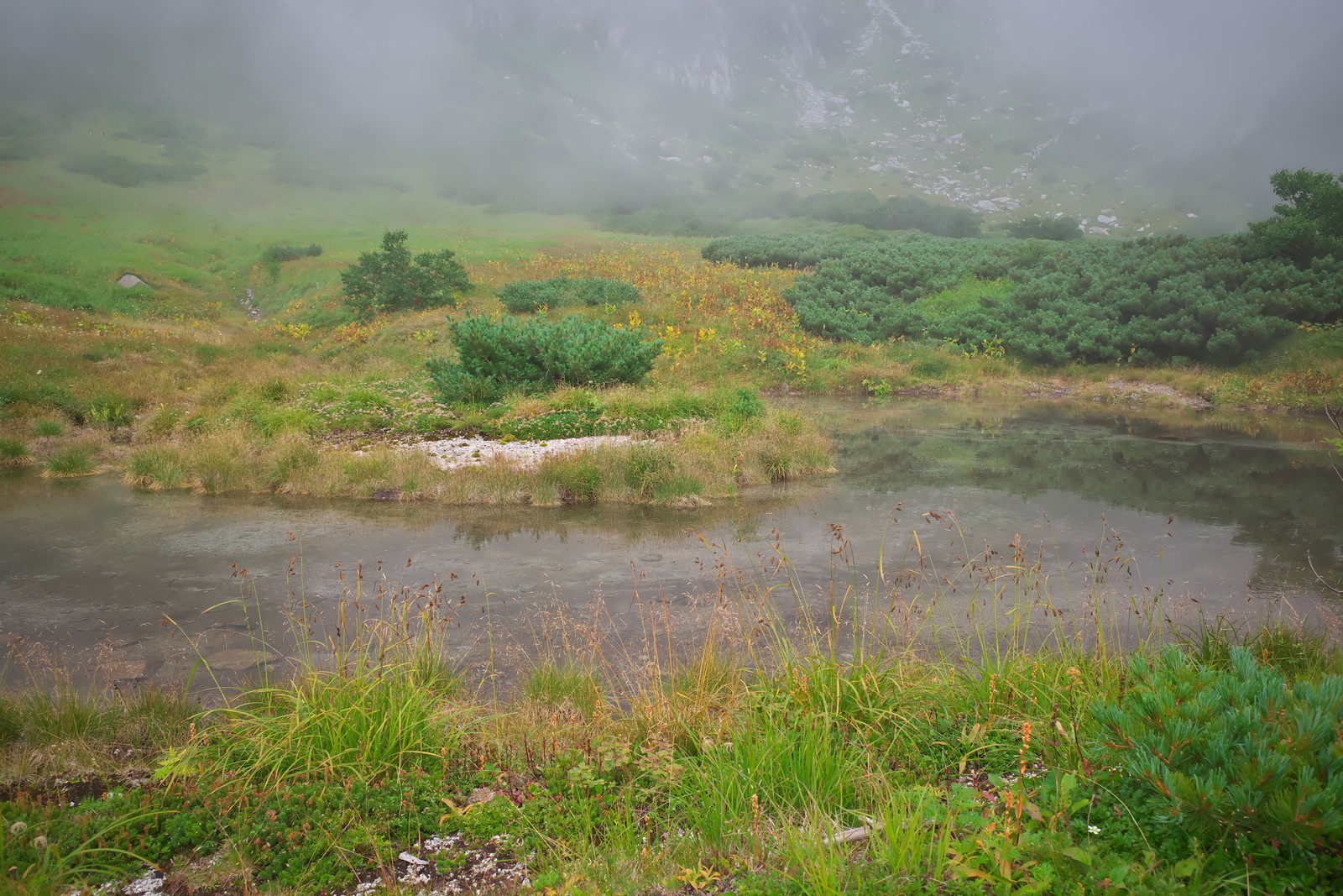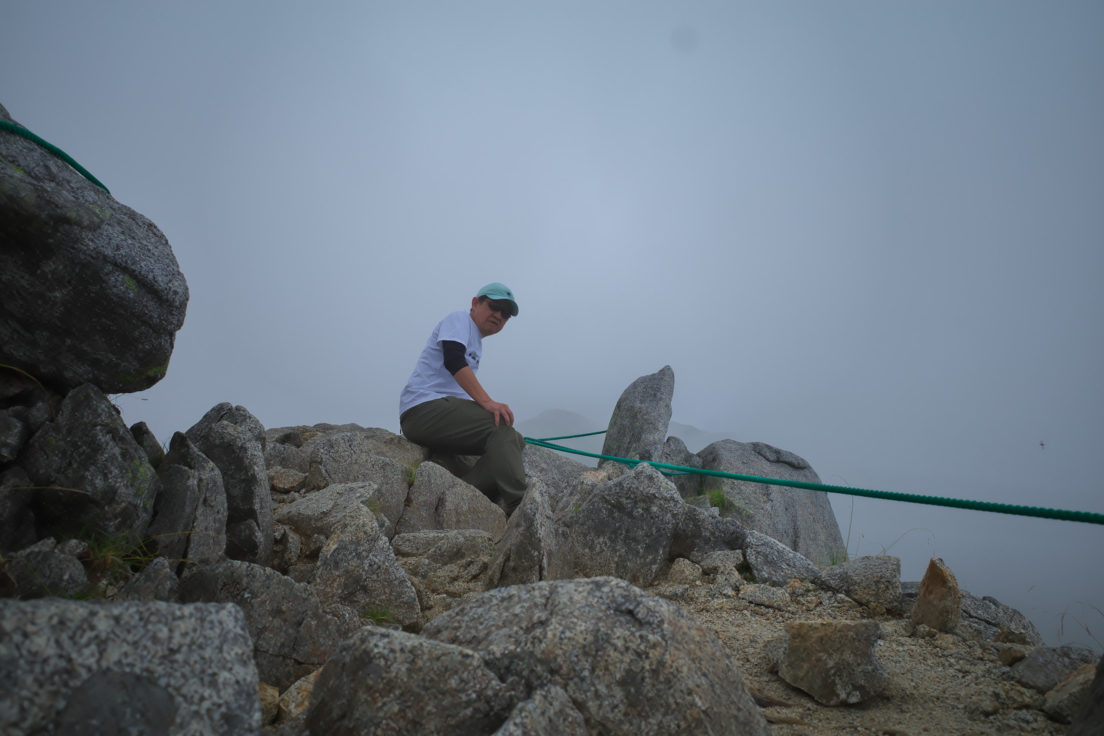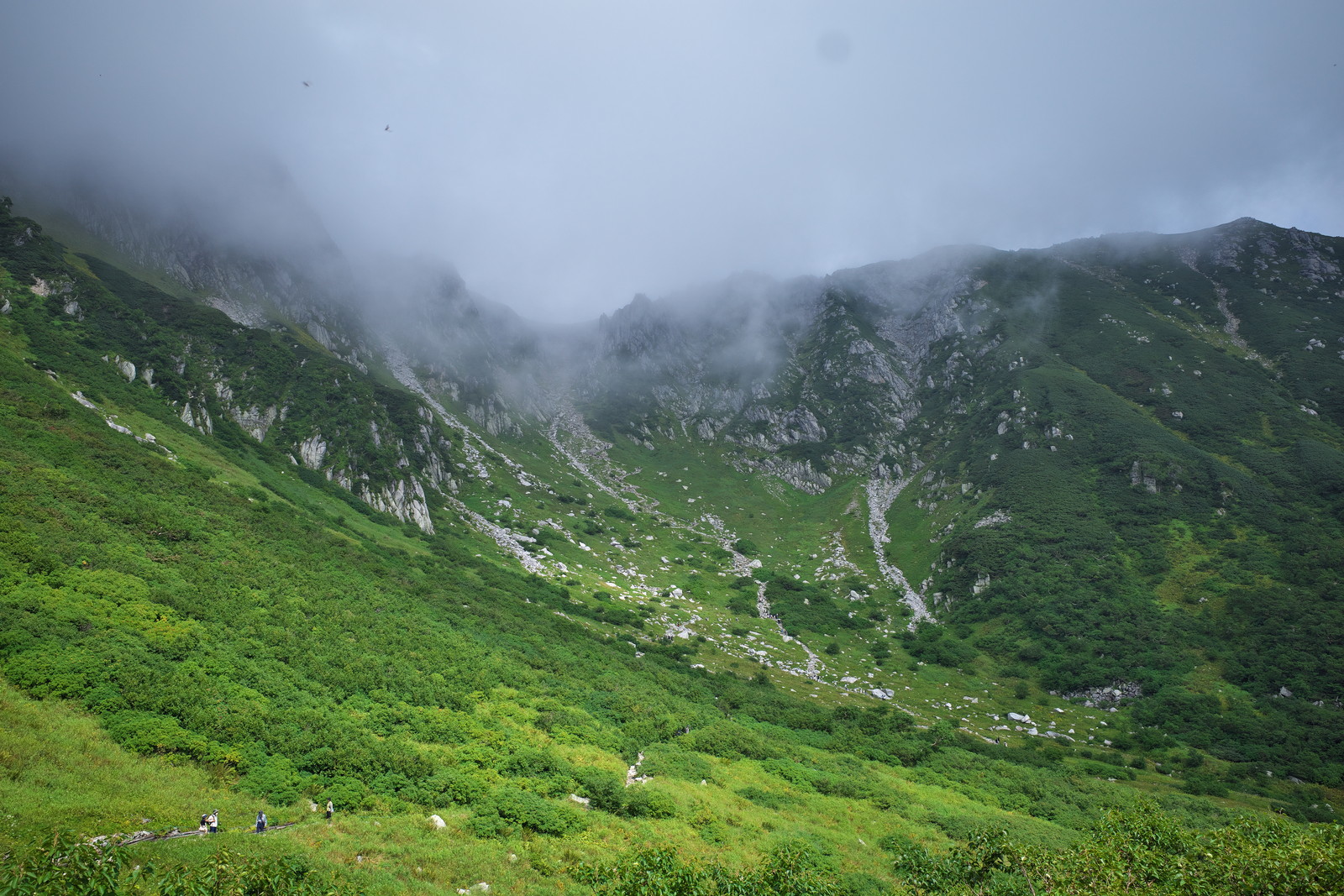 再び、乗越浄土に戻り、中岳方面へ。山の天気は変わりやすく、雨が降ってきたと思ったら、ガスって前が見えず。