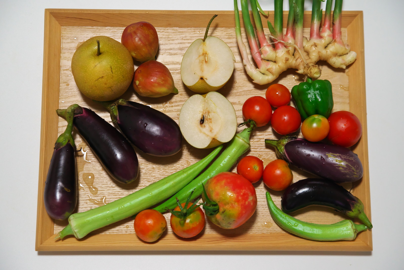 暑すぎて畑にも行けない。野菜も元気がない。少し暗くなってから水やりを行ったが、30分で汗が噴き出る。収穫野菜は、ナス、キュウリ、島オクラ。