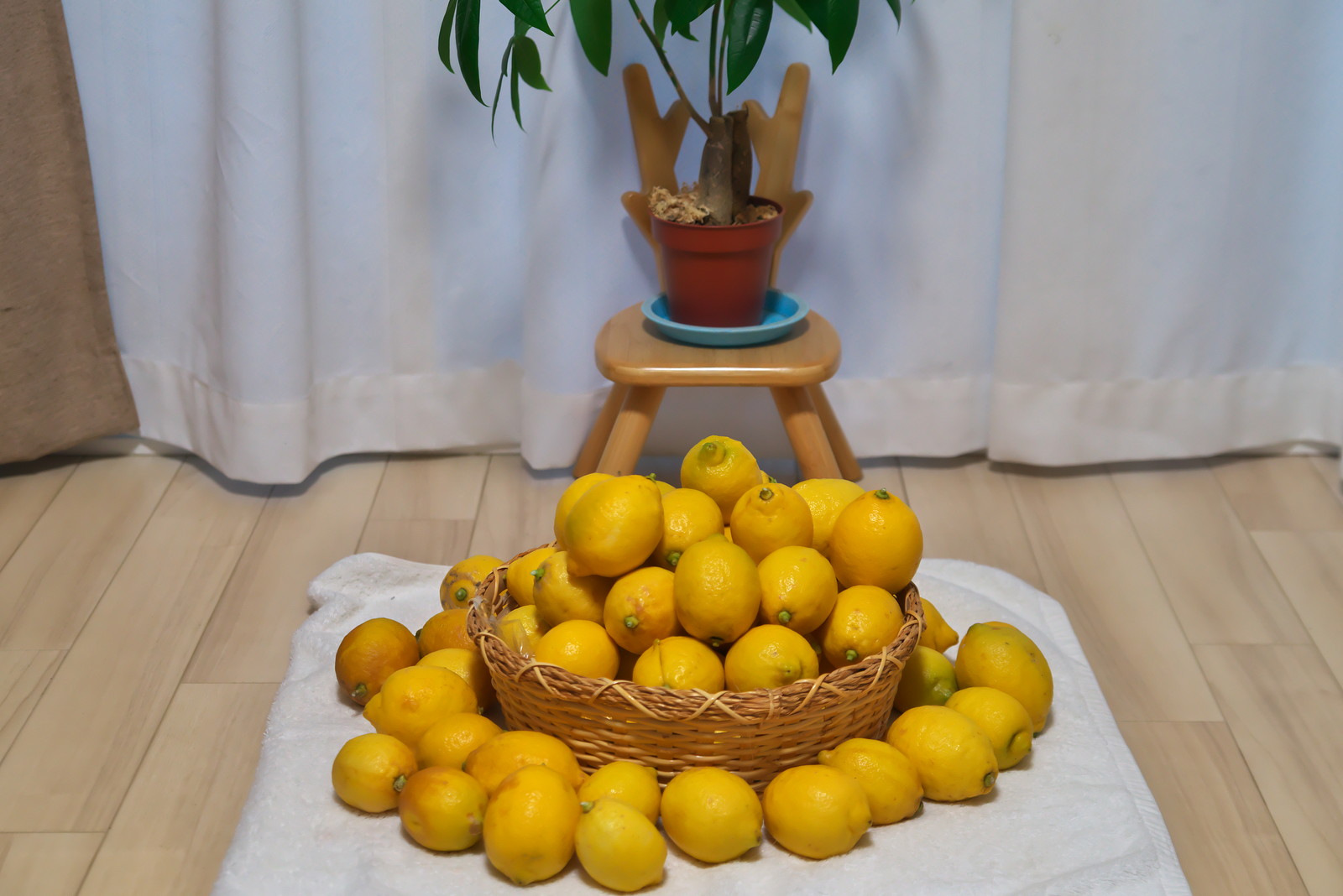 他方、庭のレモンに木には潤沢な実がなっていて今日も収穫を行った。
