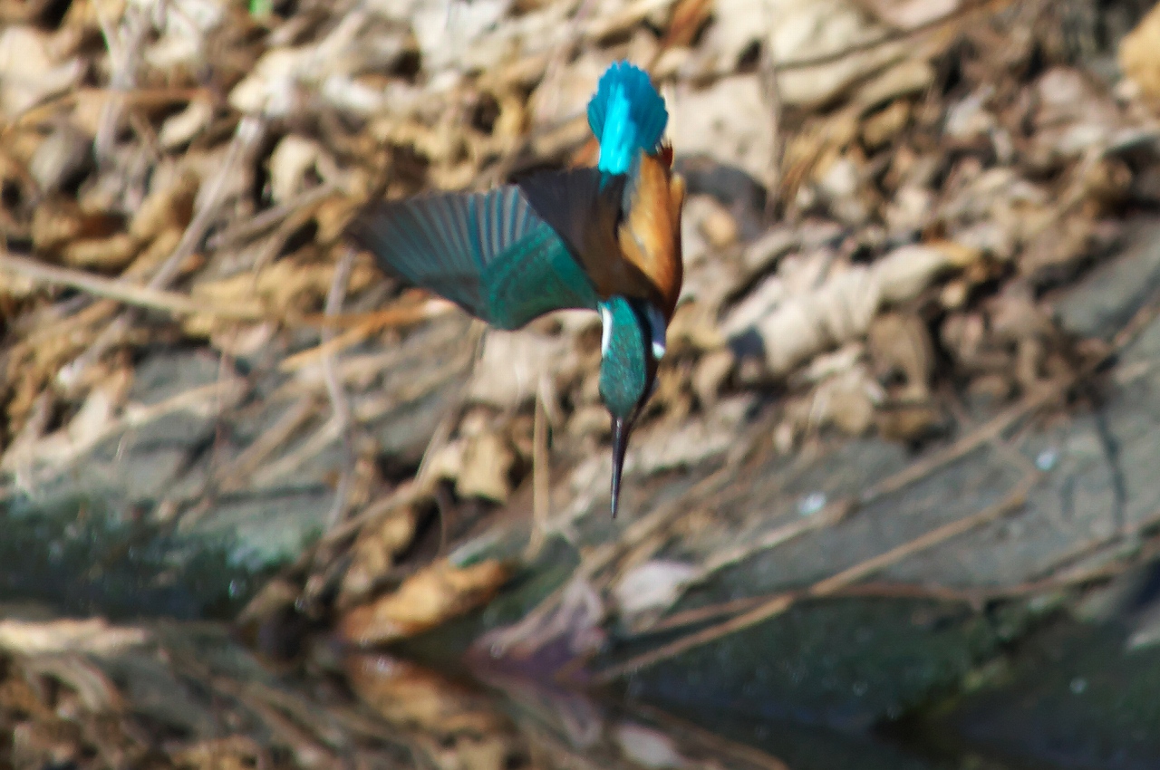 なお、野鳥撮影のきっかけとなった「カワセミ」もダイブを魅せてくれました。さすがにダイブの画はブレがあります。「(^^ ;)