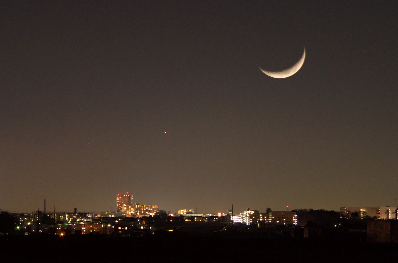 月と金星は300mm(K-30[F6.3 1/200 ISO800 0EV])で夜景は55mm(K-30[F6.3 1秒 ISO800 0EV])での撮影を多重露出して見ました。