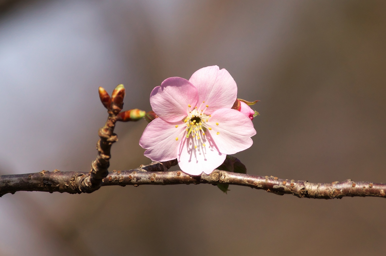 あと、桜の花が一輪狂い咲きです。暖かいからかな??