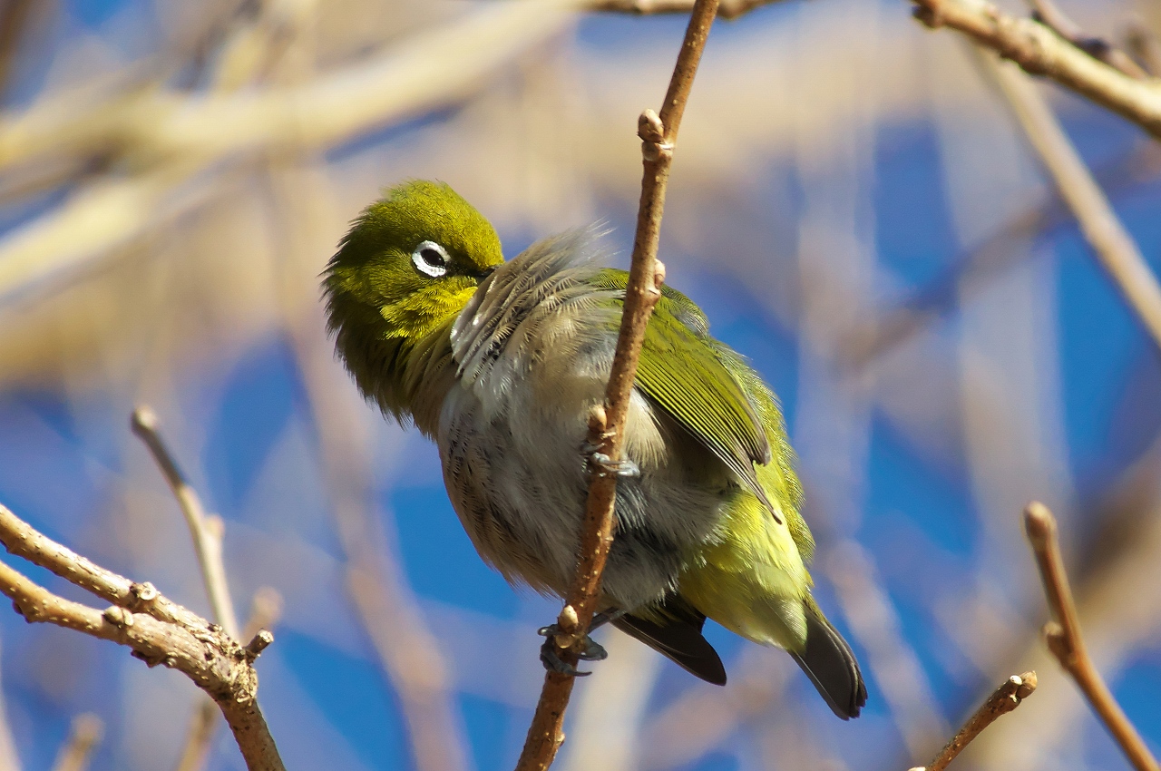わんこと一緒なので、ハードな場所での撮影はできませんが、「メジロ」が解像した画になっています。