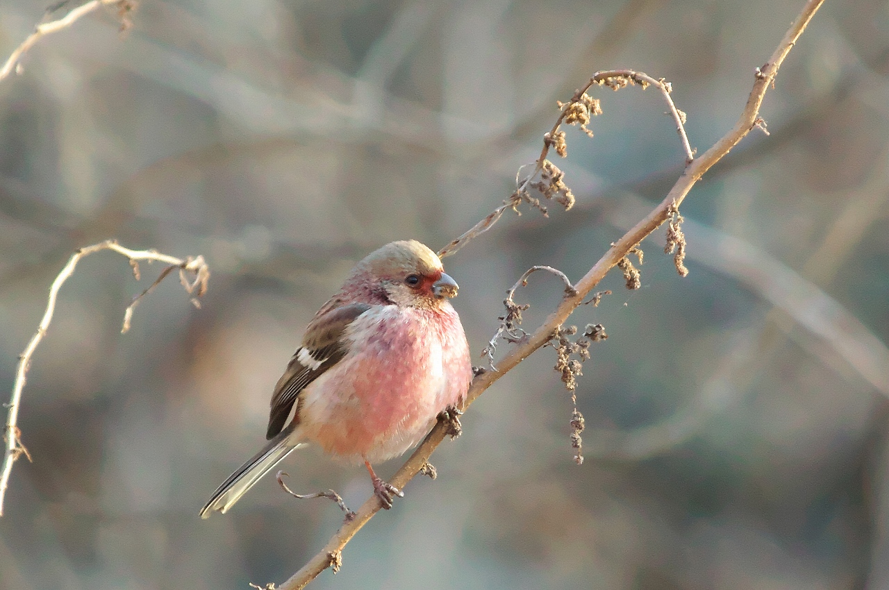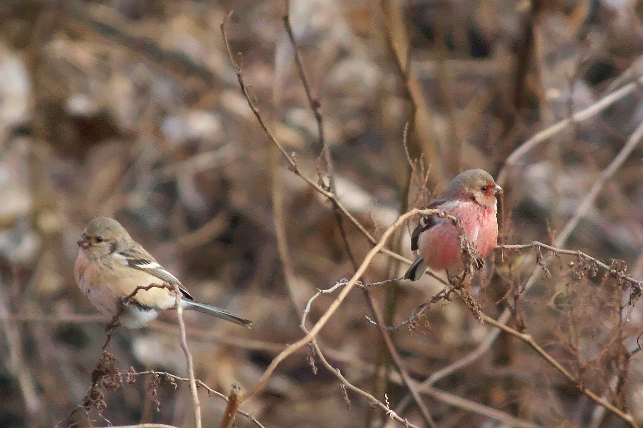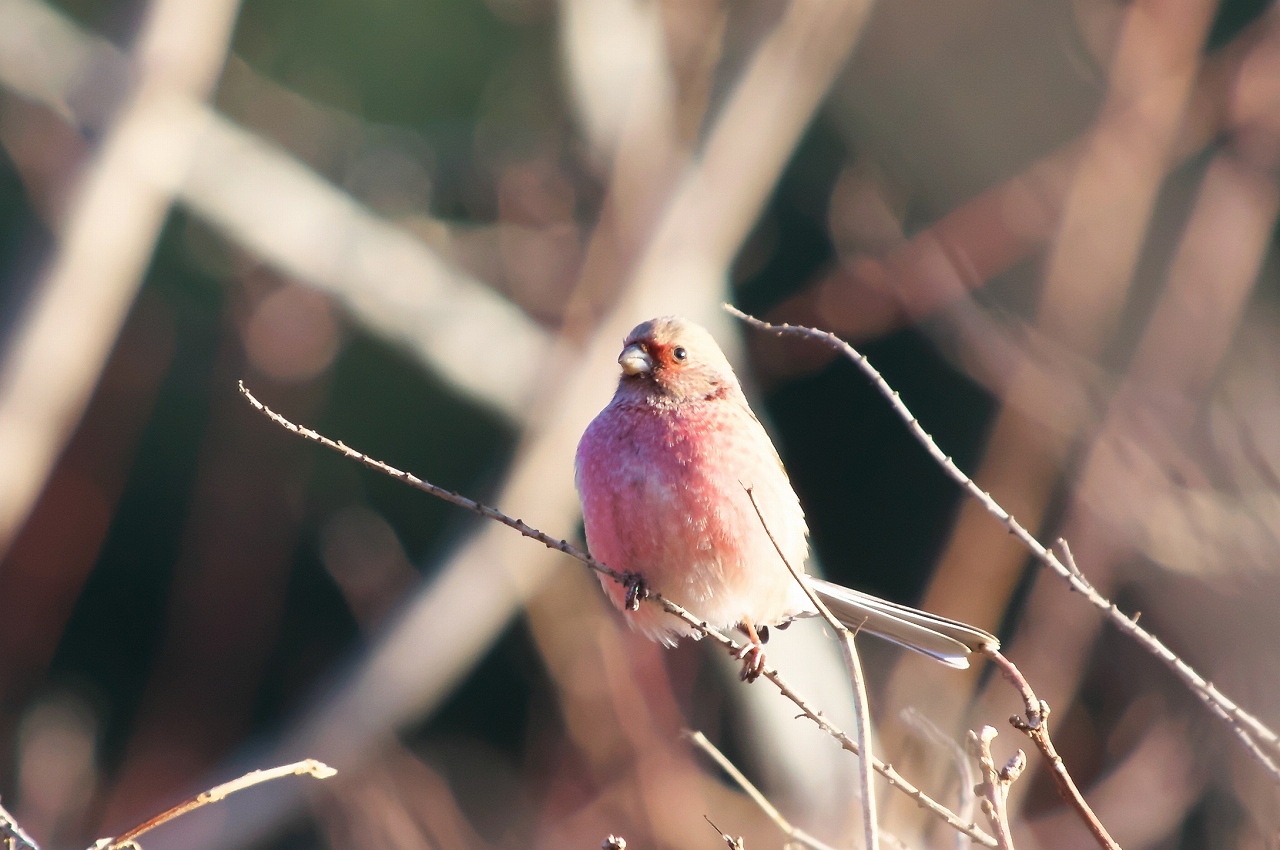 朝散歩で、何と、再び「ベニマシコ」に会うことができました。(o^^o)