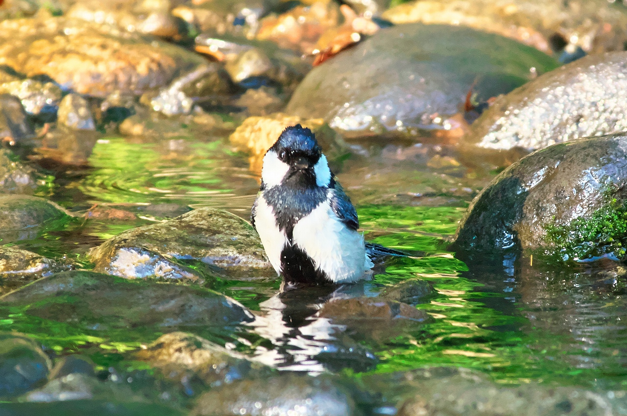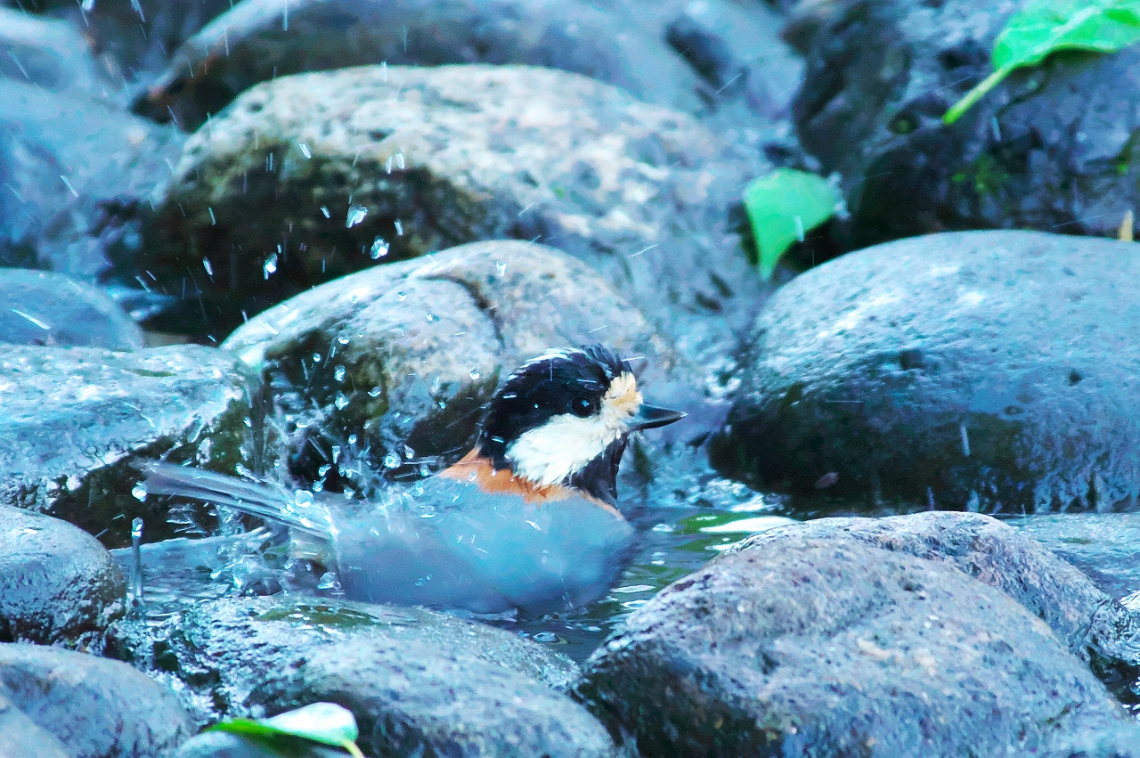 すると、シジュウカラとガビチョウが水浴びをしていました。ついでに「コミスジ」(蝶)もアップします。