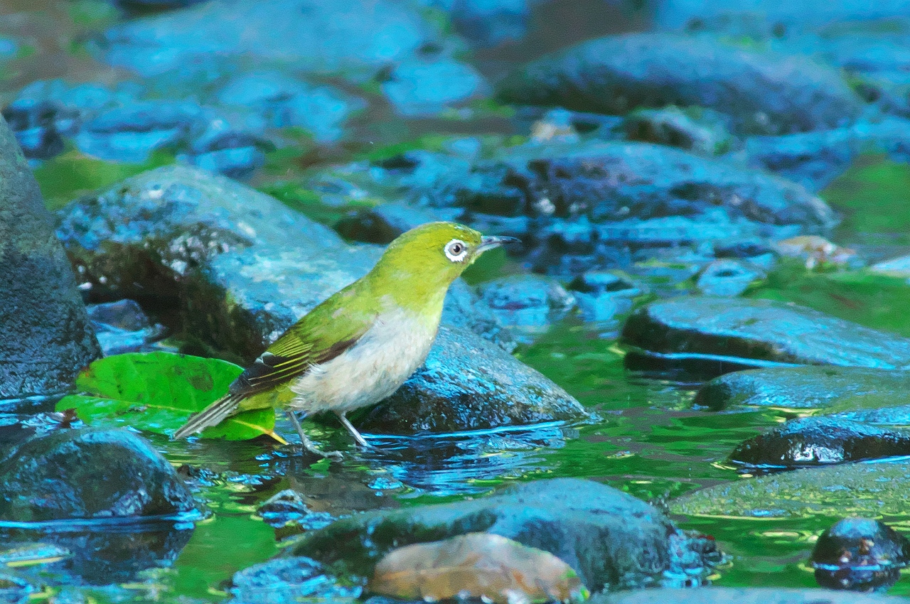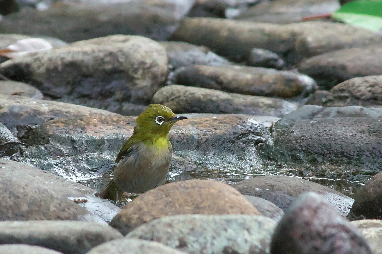 さて、夕方に再び相模川自然の村公園に行ってみました。今度はメジロが水浴びしてました。