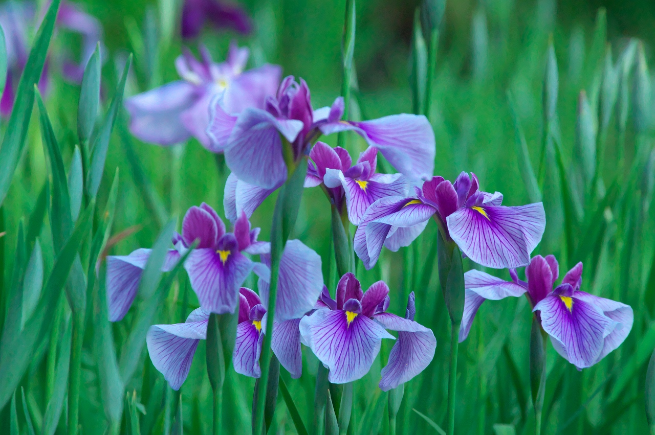 「花しょうぶ」は水辺の湿地帯で生育し、「あやめ」は乾燥したところで生育、「かきつばた」は水中や湿地帯で生育します。