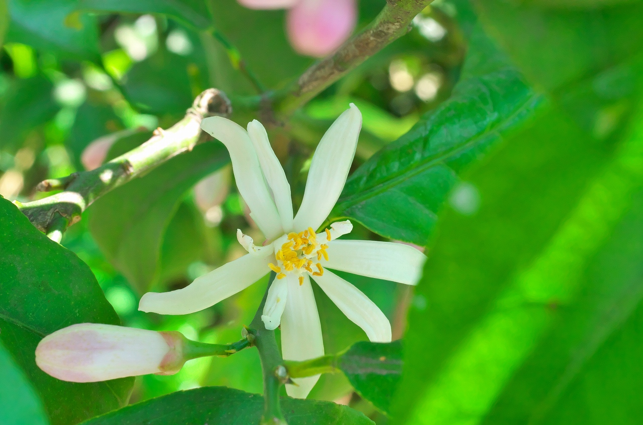 レモンの木に可憐な花が咲いています。バラもかなり咲いてきました。