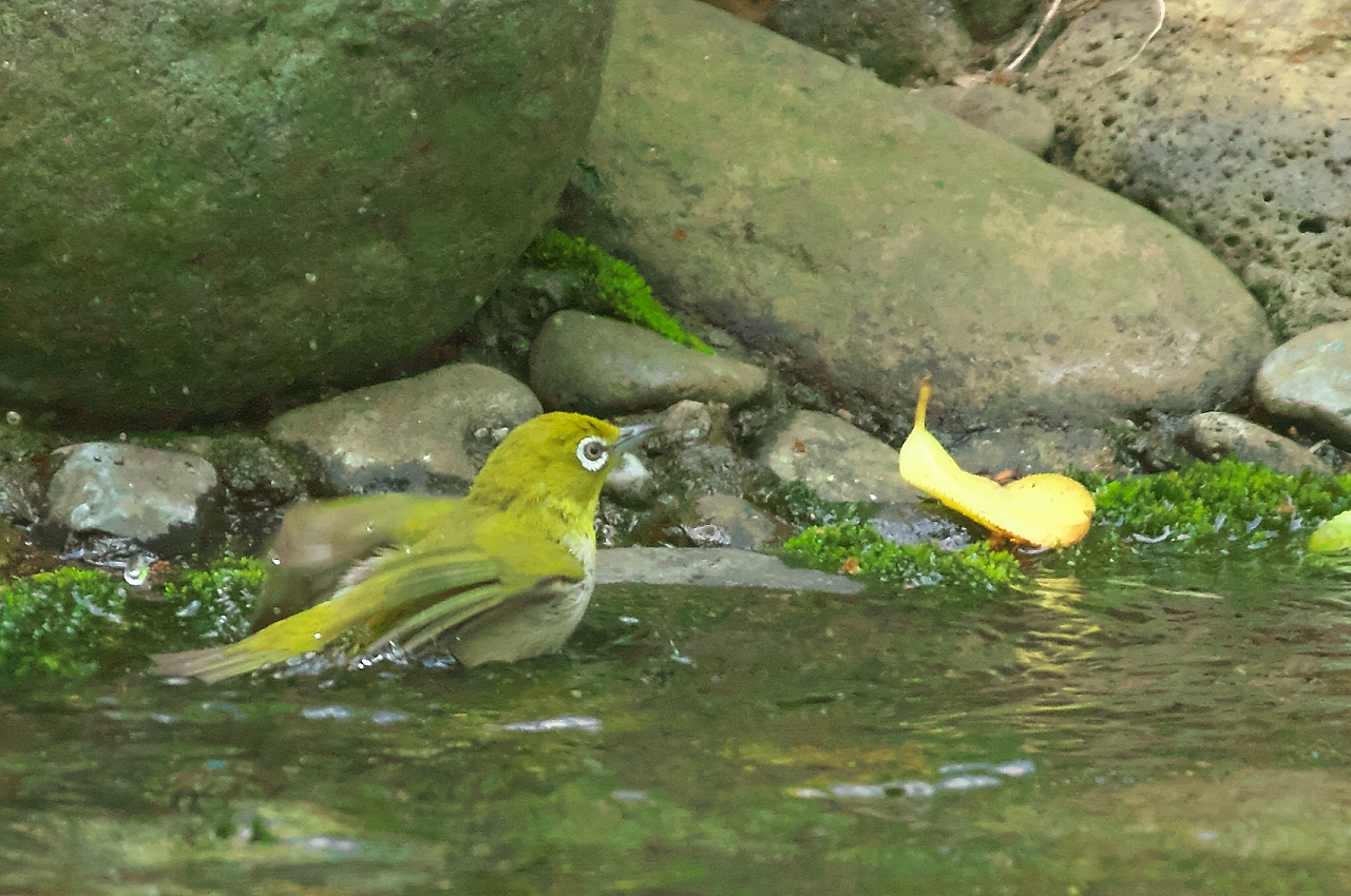 今日、メジロの水浴びを撮ってきましたが、「鶯(うぐいす)色」というと、このメジロの色を連想する人も多いようです。