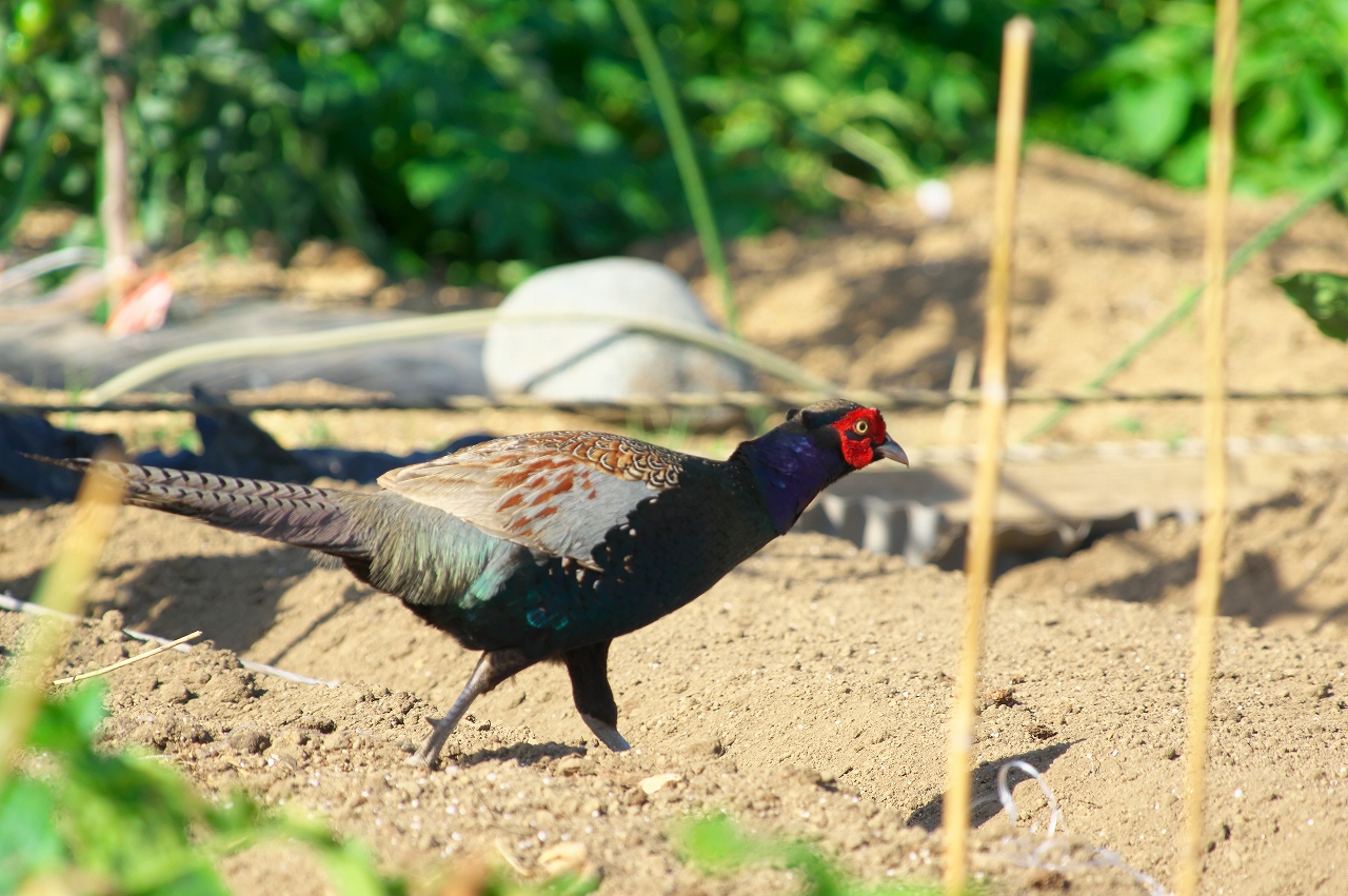 さて、4時頃、ワンコと相模川自然の村公園に散歩に行ってきたのですが、とんでもない珍客に会いました。何と、キジが畑を歩いて道を渡って公園内の藪に入っていったのです。桃太郎と鬼退治に行く途中だったのでしょうか?