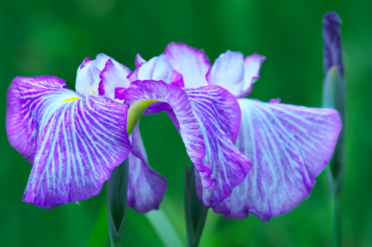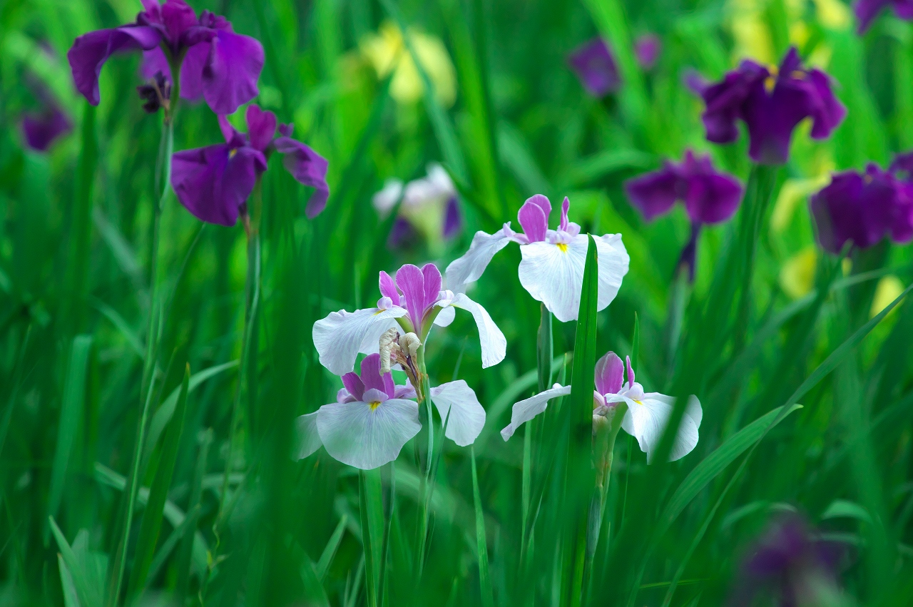 「花しょうぶ」は「アヤメ」「カキツバタ」と同じような花の形や花色をしていて、なかなか見分けにくいのですが、昔から「いずれがアヤメか、カキツバタ」という諺があるように、美しい物のたとえに使われる位に優雅な花です。