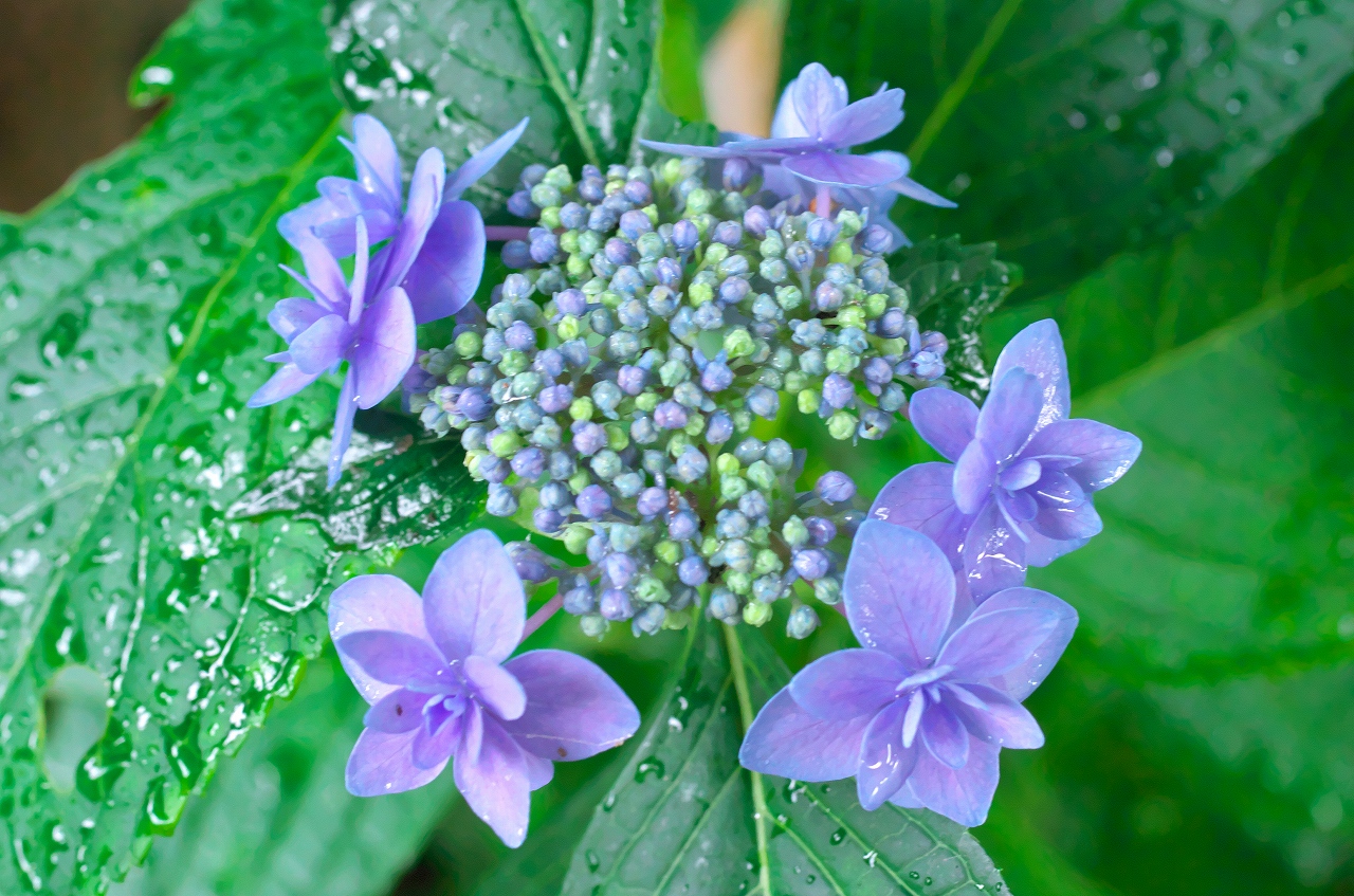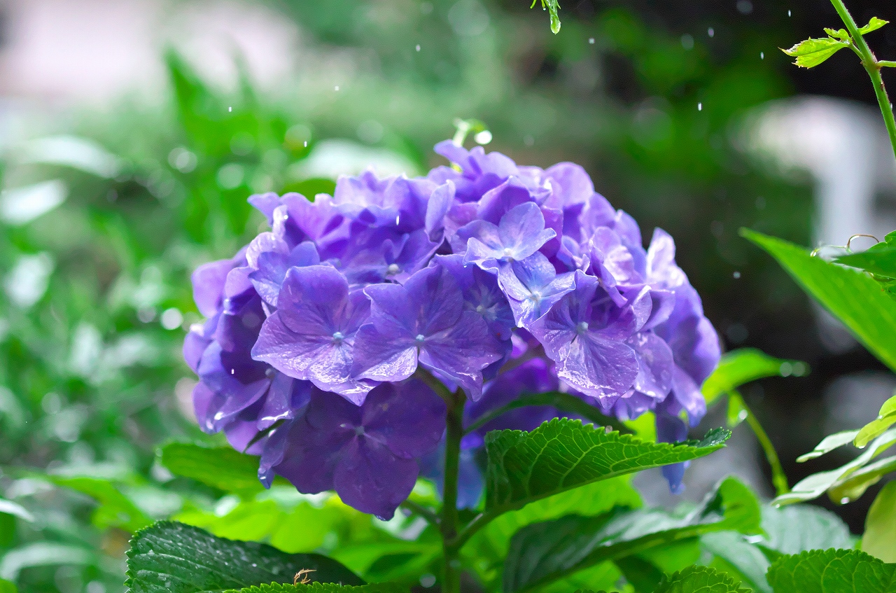シャッター速度をぎりぎりまで高めて、細かな雨粒をアジサイの花一緒に収めてみたかったのです。