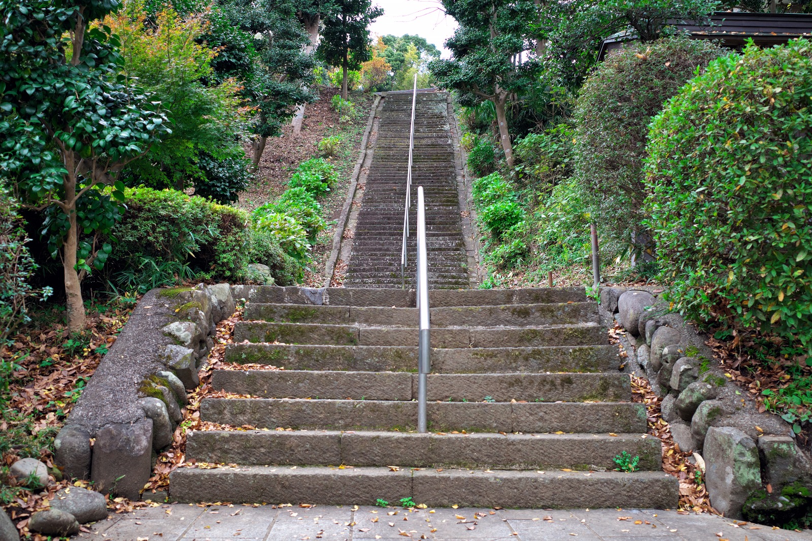 田名八幡宮で足を止め参拝。その後、今日の課題をアップダウンと考え、旧大山街道を上り、その後、新道を下りきり再びお寺に。昨日も登ったお寺の階段を1往復半。