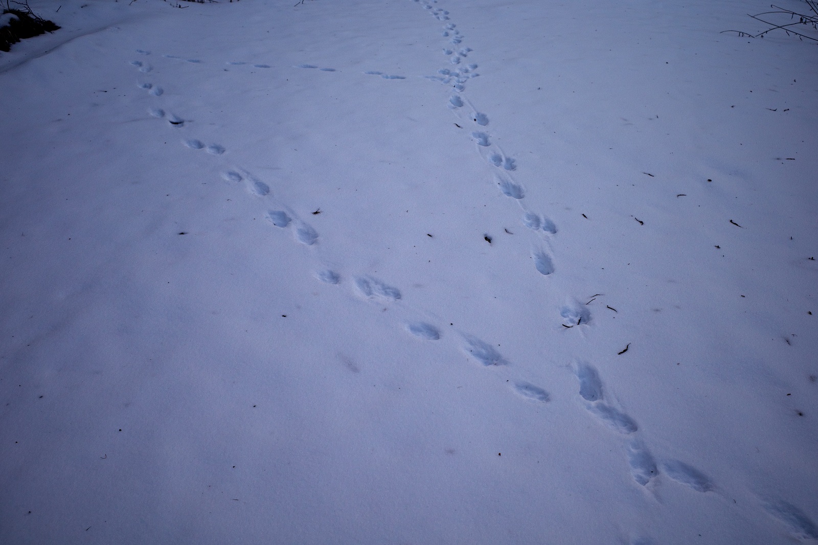 森の中を散策していても、誰にも会いません。ボッチ散策は怖いくらいです。雪の上の足跡も、人間のものはなく、ウサギ、リス等の足跡だらけです。