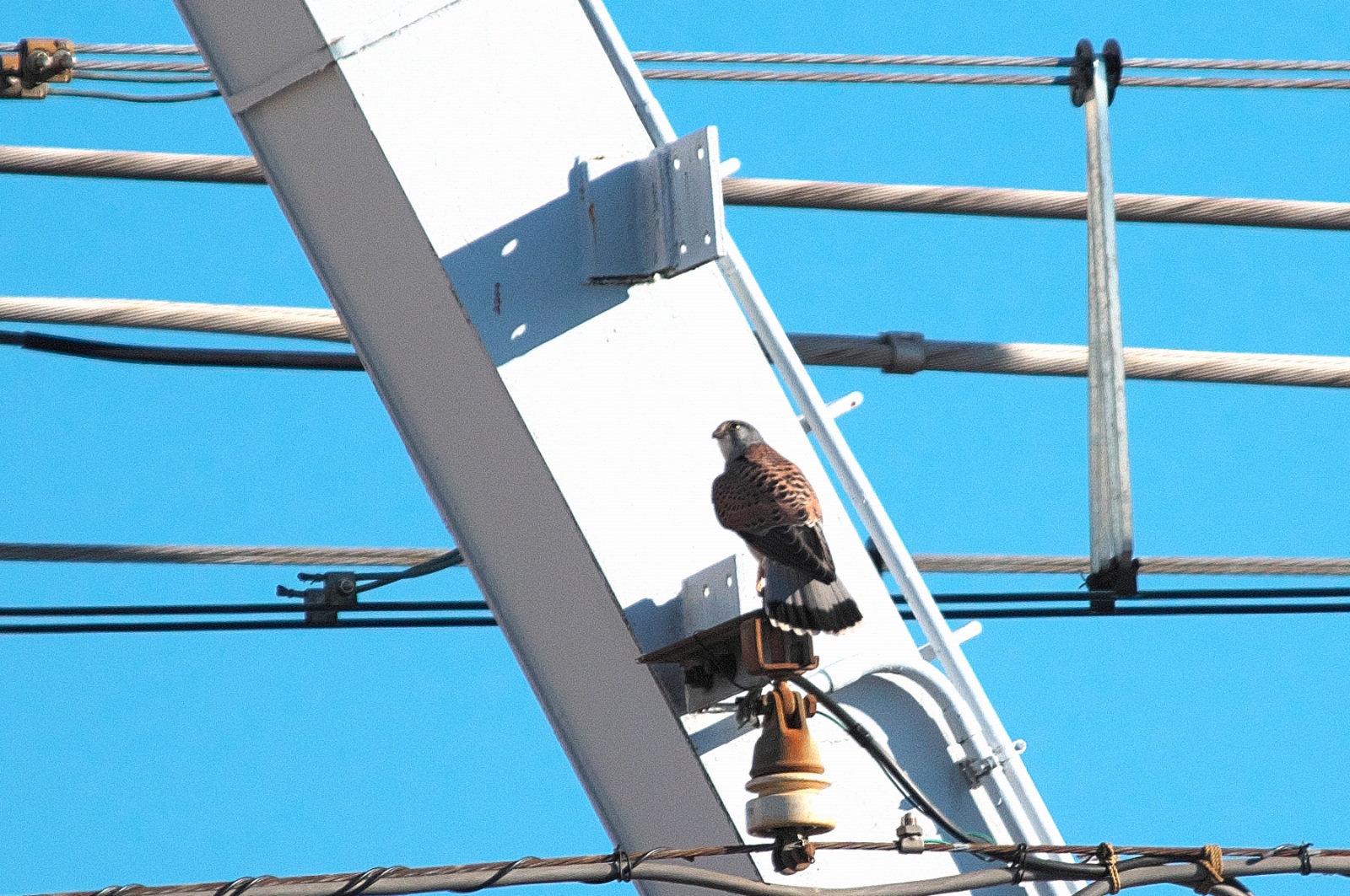 すると、京王線橋梁になにげにチョウゲンボウがいるではないか!