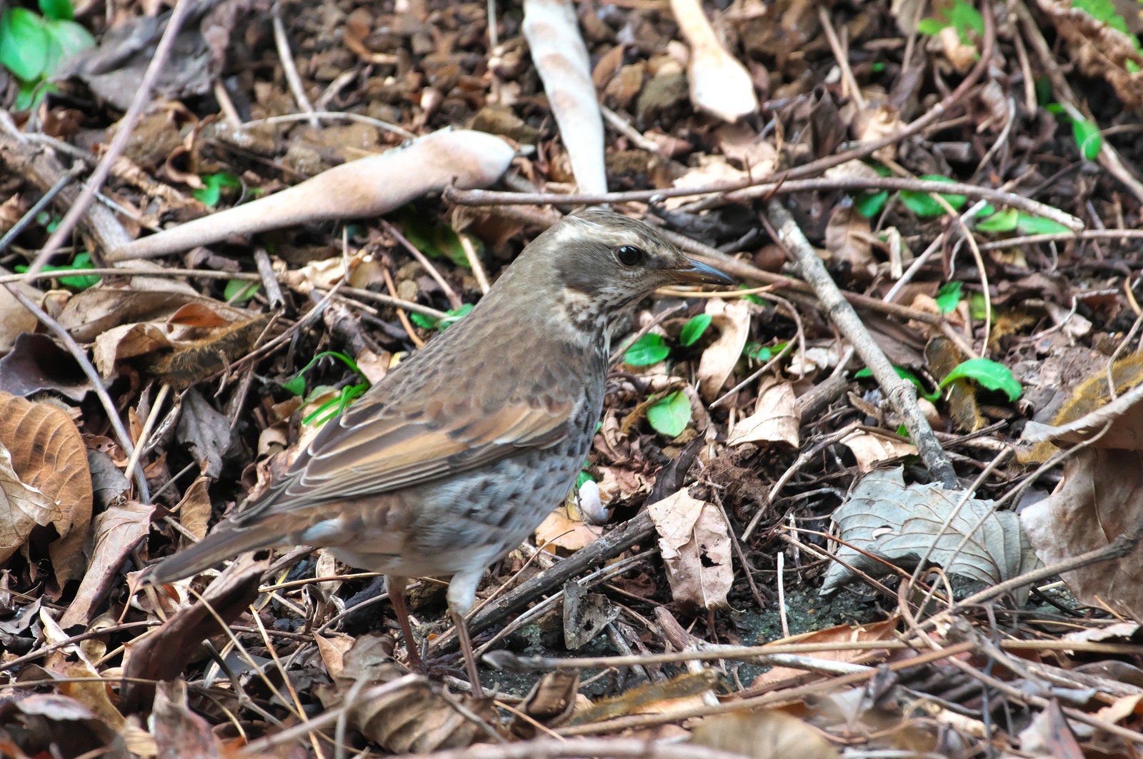 畑に行ってみると、冬鳥のツグミが来ていた。