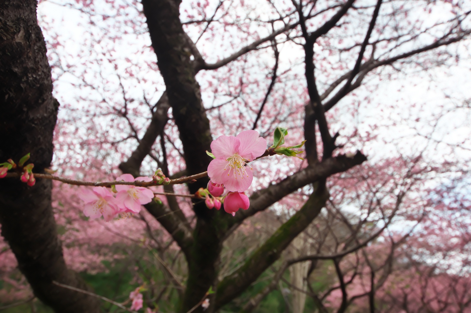 さて、午後からは、仕事の合間を見て大島河原の相模川自然の村公園へ河津桜の様子を見に行ってきた。