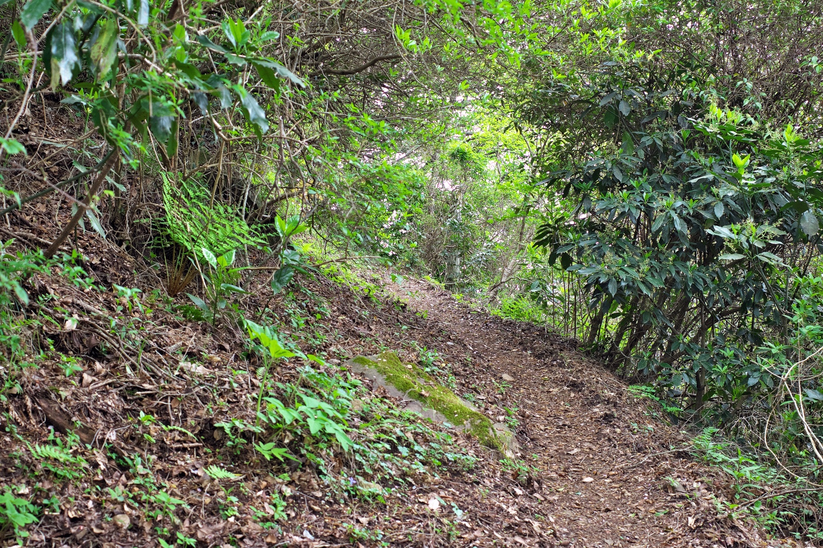 画は先日の城山トレッキングの山道。このポジションは山頂間近のわずかな急登部分。