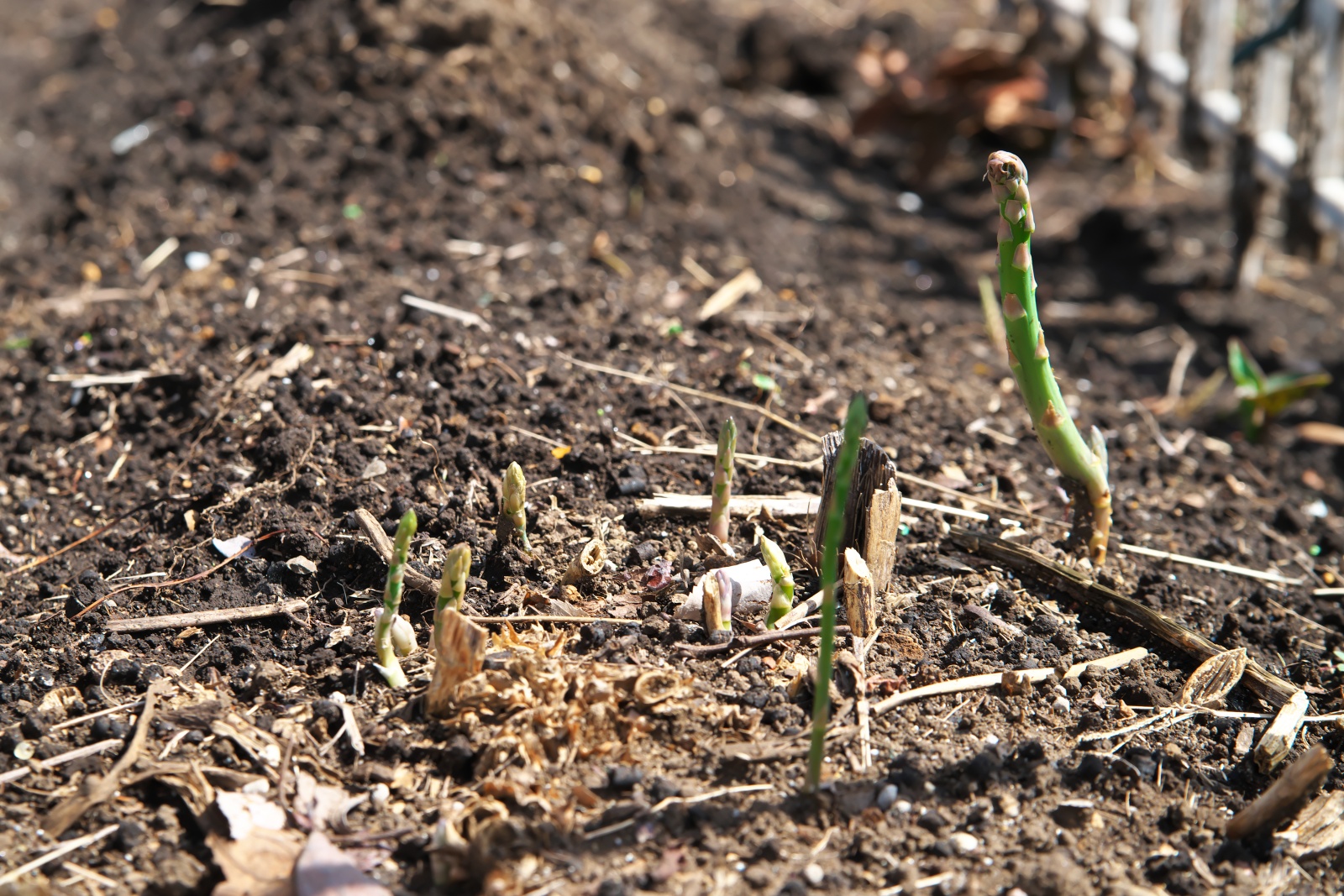 さて、今朝の畑パトロール。昨日が肌寒かったため、アスパラガスの伸びも鈍化しているが、今日は暖かいので夕方には収穫できるかも。