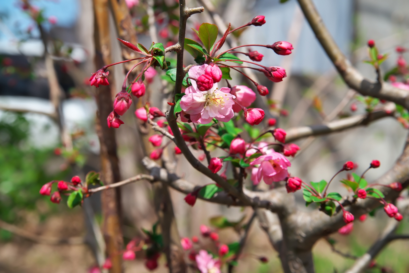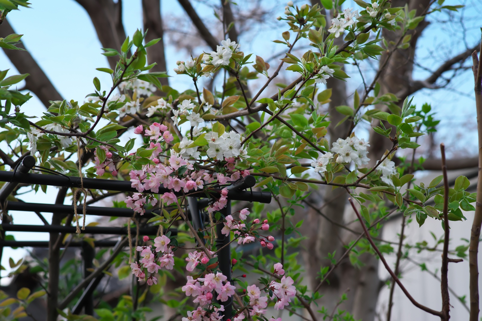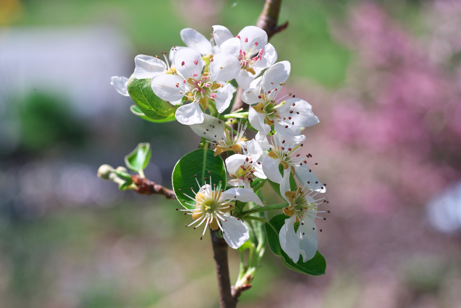 もう一枚は、洋梨の花とハナカイドウのコラボを神レンズFA 77mm F1.8 Limitedでパチリした。