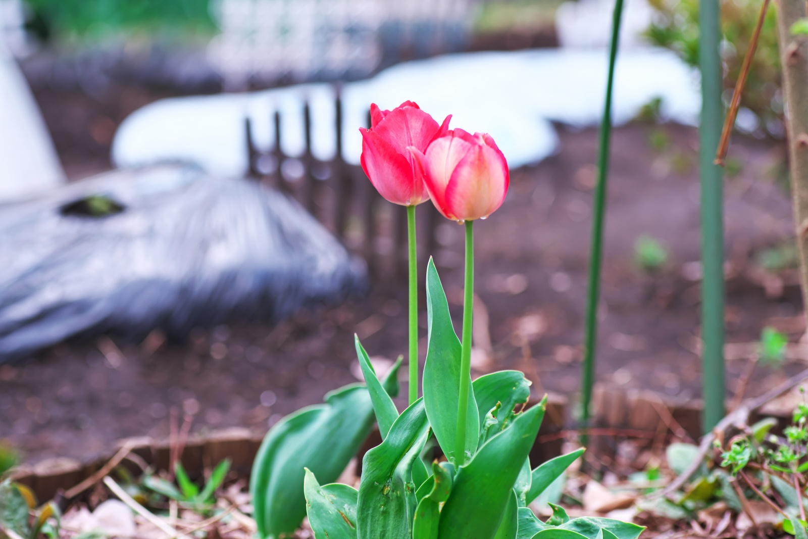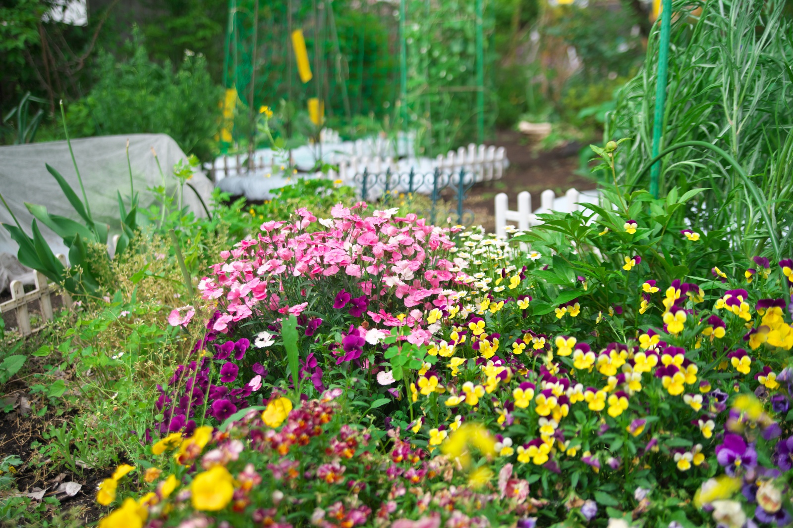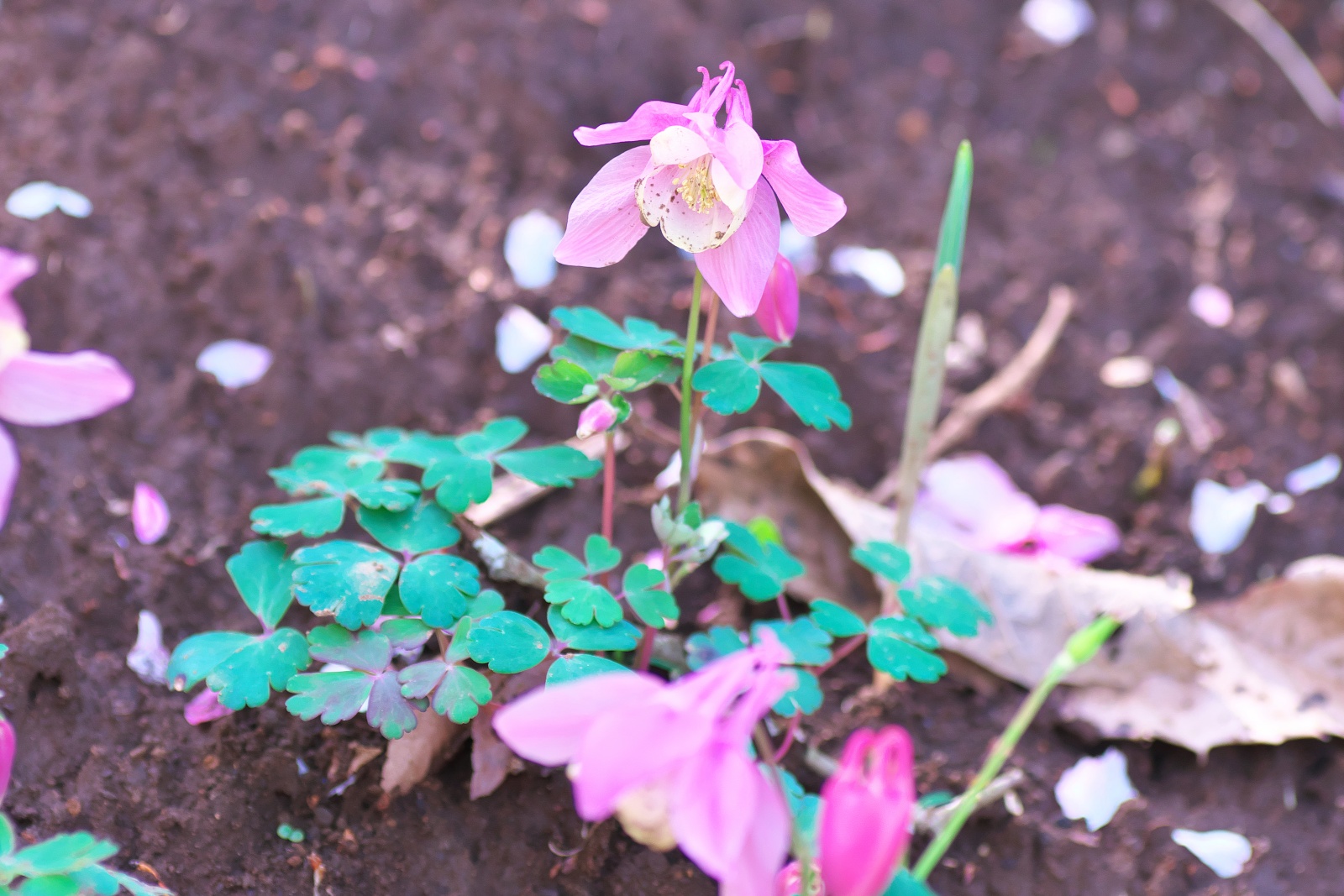 本日、二度目のアップの画は、芽を出してきたジャガイモ(キタアカリ)と庭の花たち。