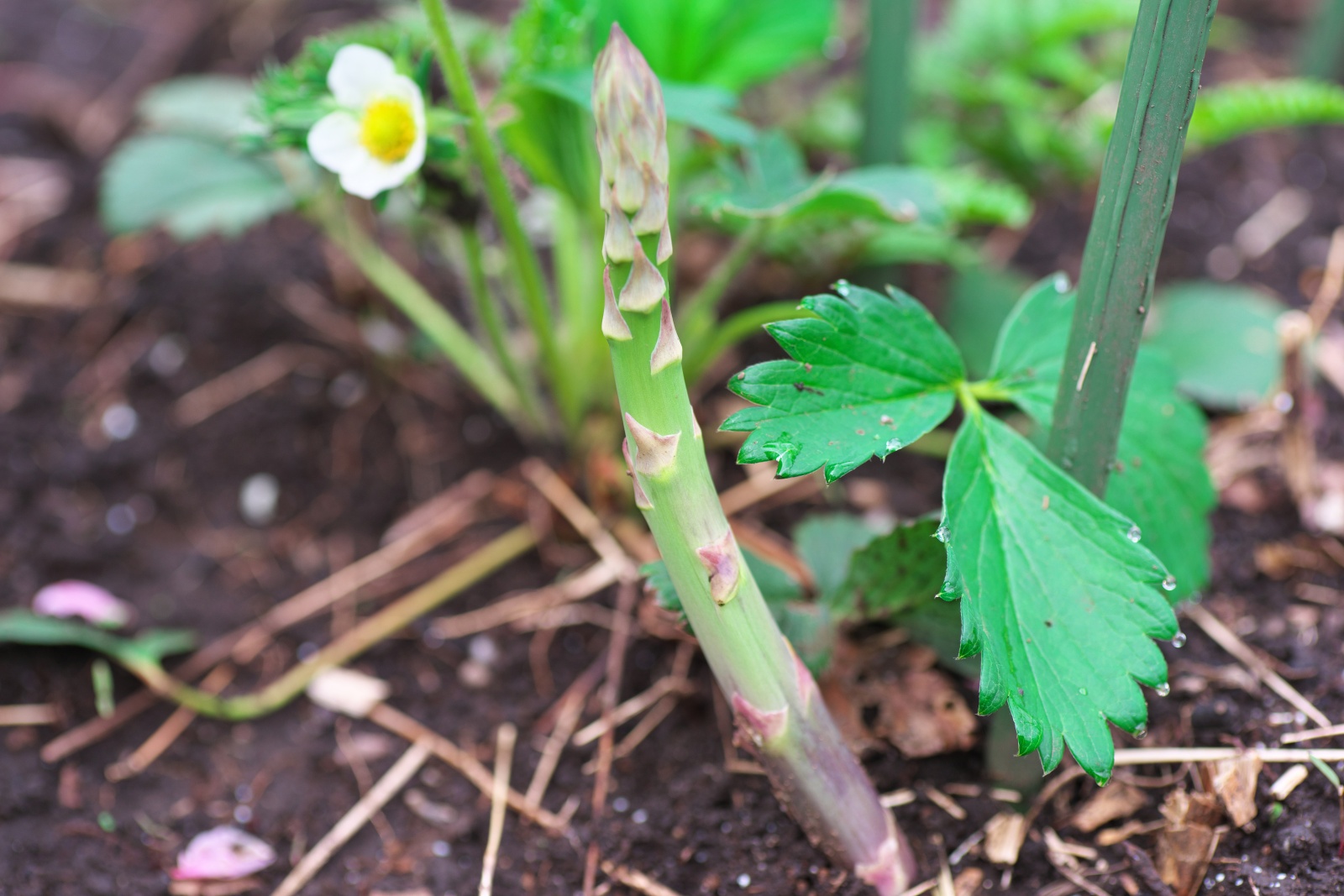 実が、一昨日にアスパラガスは初収穫済み。パチリする前におなかに入ってしまった。