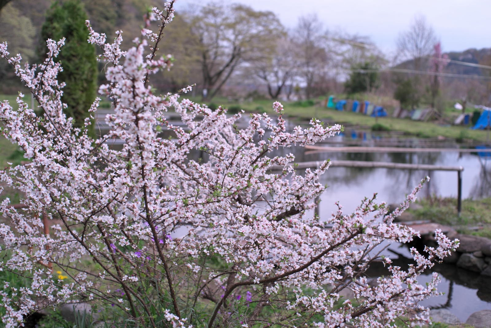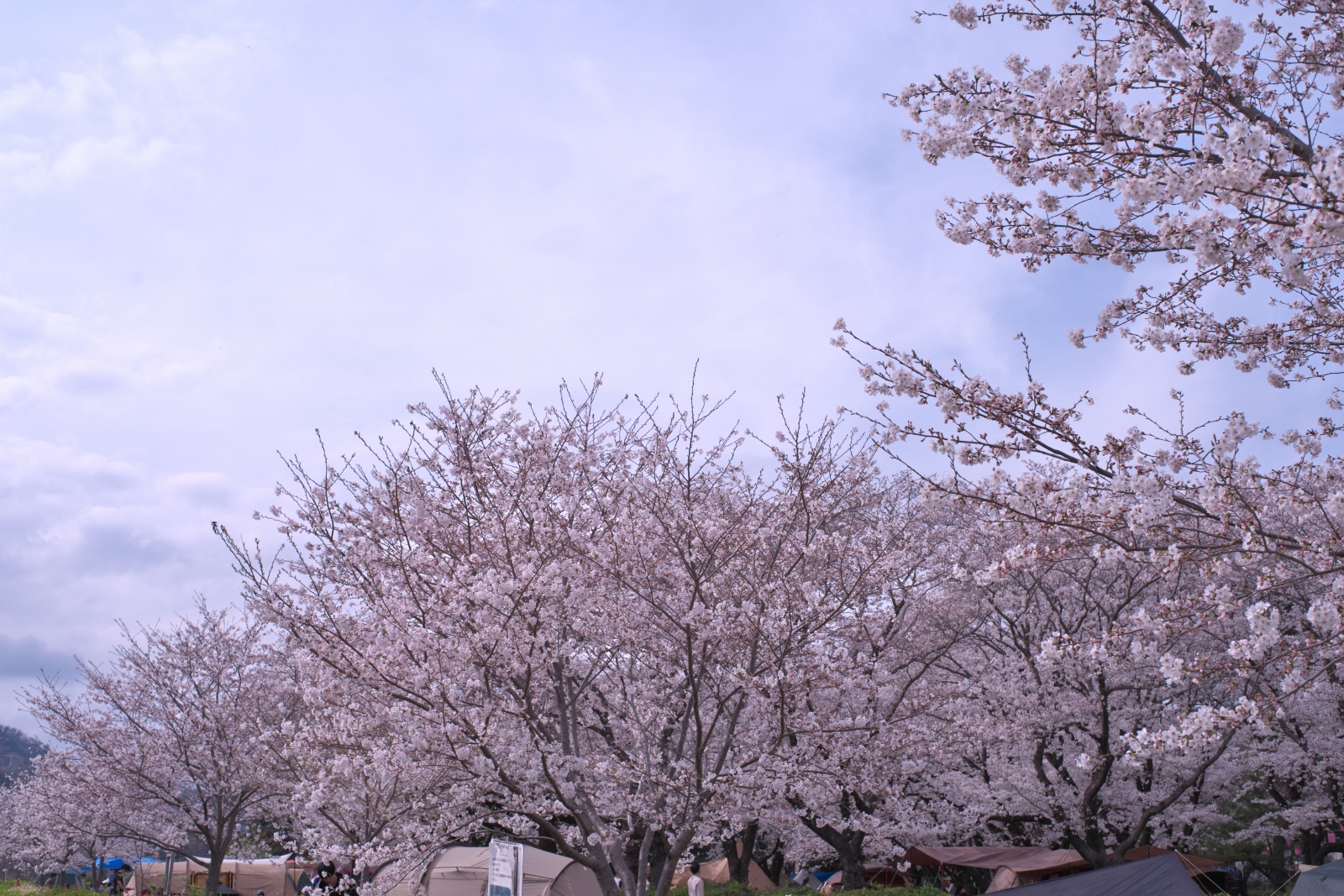 でも、こんなことじゃいけないと思い、一眼とレンズ数本もって毎年の桜撮りに相模川河川敷の上大島キャンプ場に行ってみました。ほぼ満開でした。
