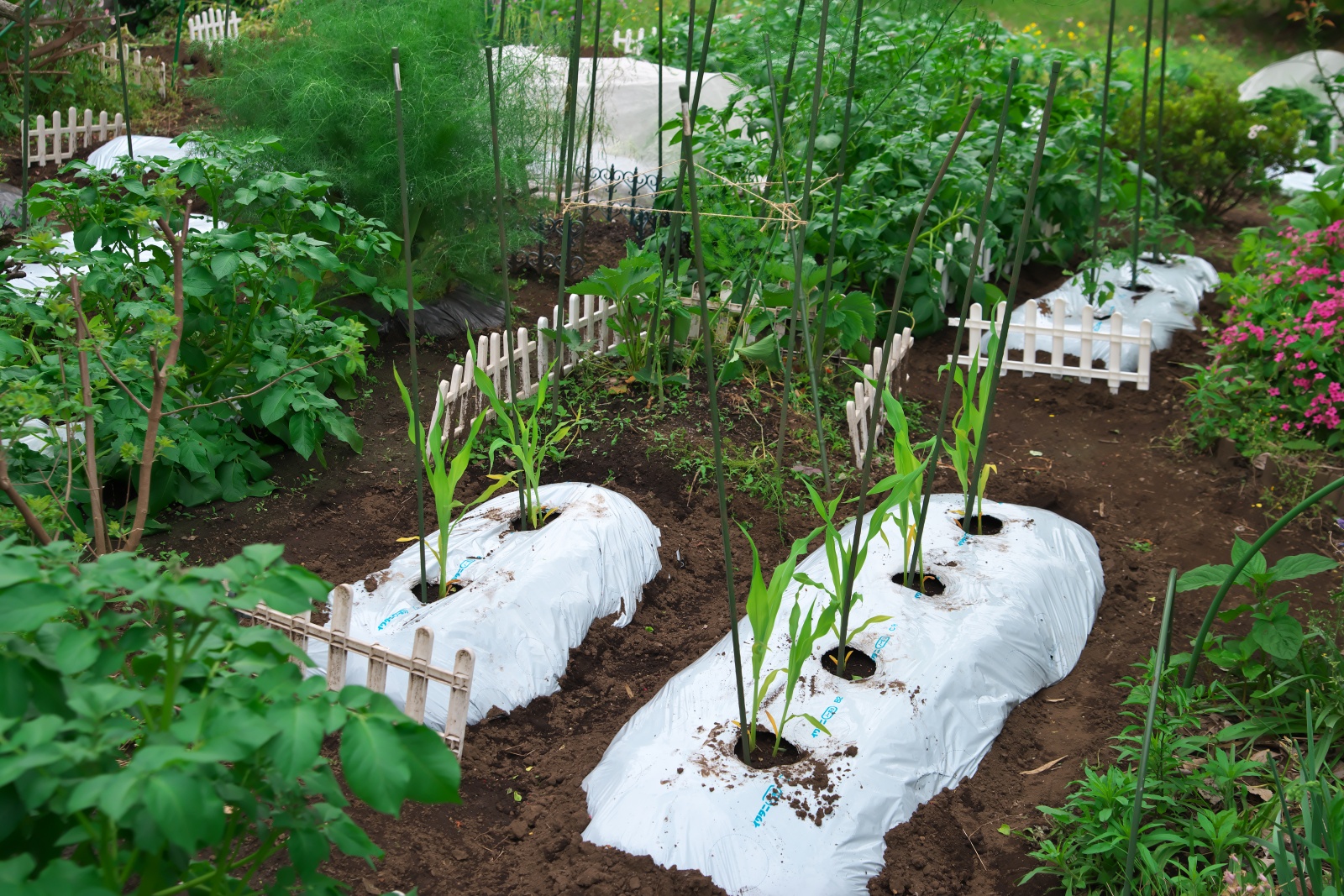 そして、畑だが、どうも「畑庭」って感じになってきた。マルチも白黒マルチを多く使用しているので、見栄えも良くなってきた。シロートの楽しみなのでこれで良し!!
