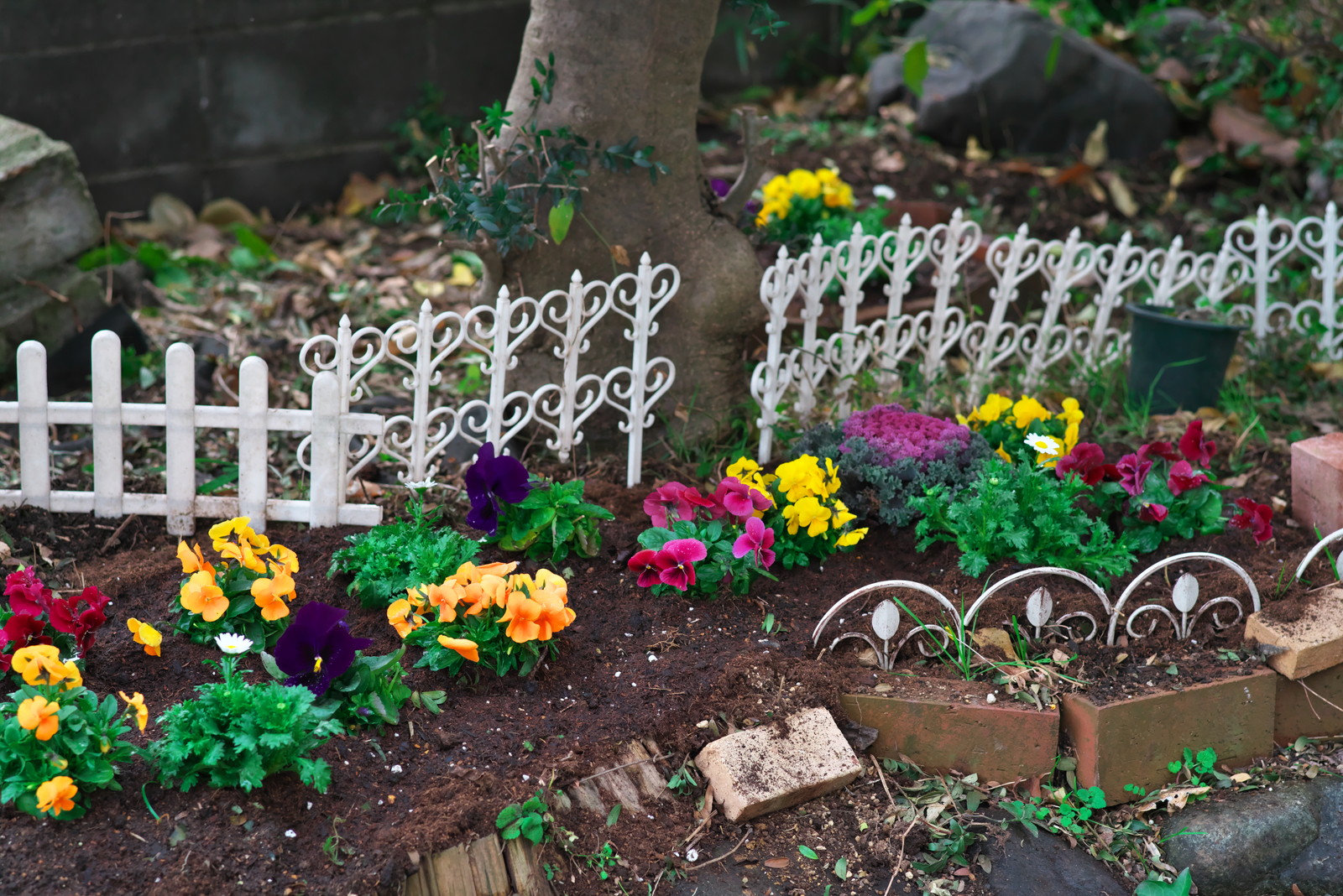 また、庭に入り口が殺伐としていたので、草を刈り土作りをし、緑化センターに行ってビオラを箱買い。