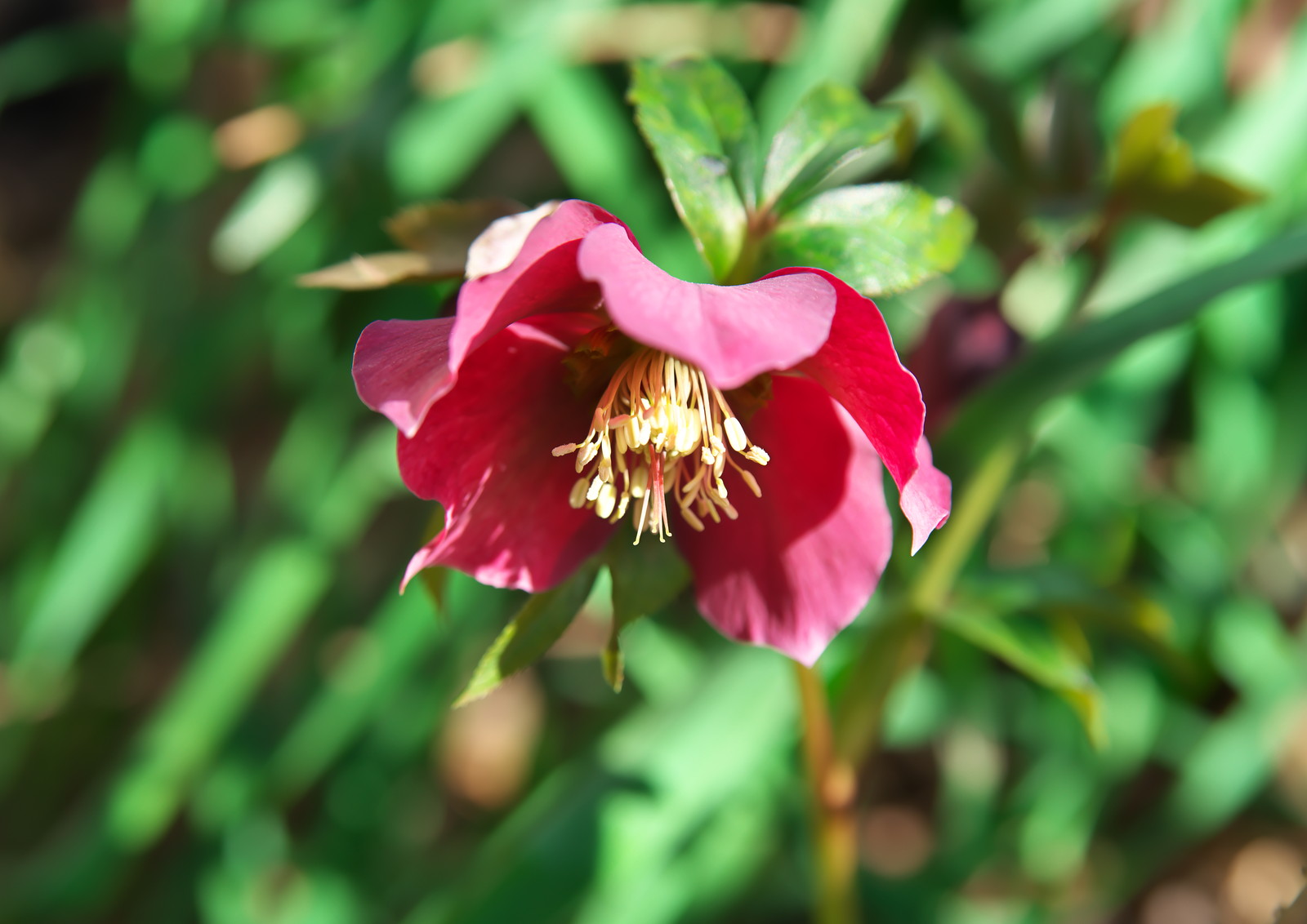 帰宅後、自宅の花をパチリしてみた。赤いクリスマスローズも花開いた。